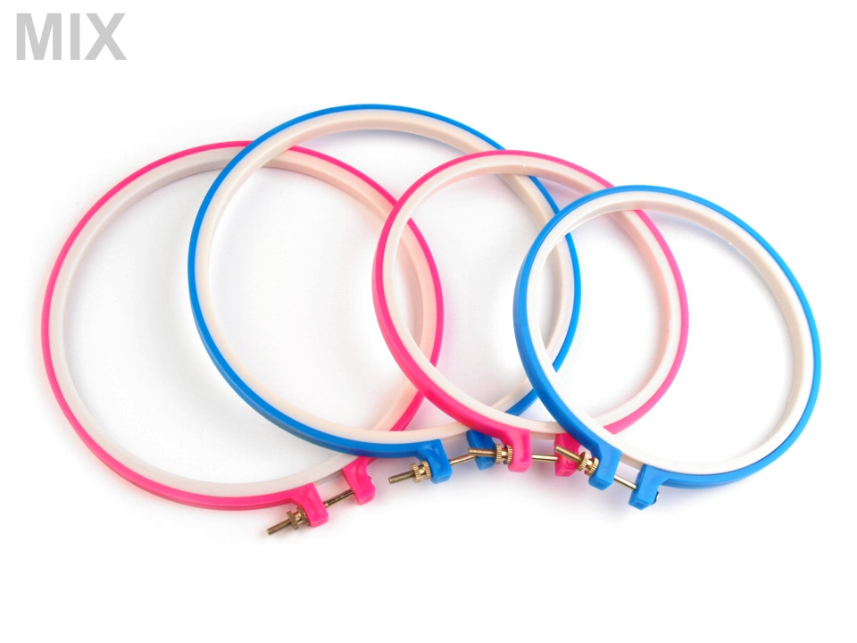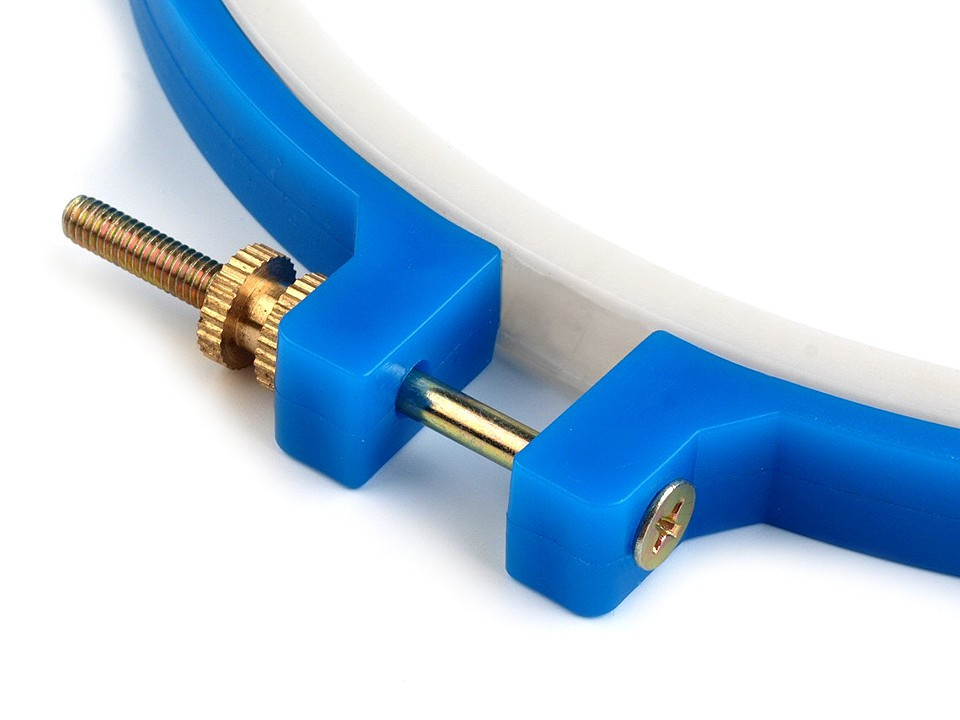 Vyšívací kruh je vyrobený z plastu. Je opatřen kovovým stahovacím šroubkem, pomocí něhož přichytnete vyšívací předlohu.