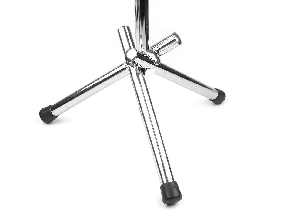 Stojan složíte tak, že si pomocí inbusového klíče vel. 6 povolíte šroub. Vysuňte kulatou část stojanu zhruba do délky 5,5 cm. Poté nasuňte kovové nohy. Viz foto.