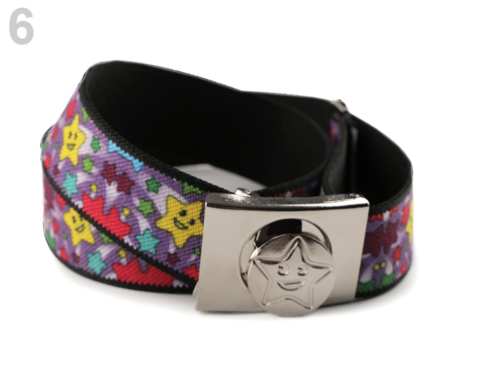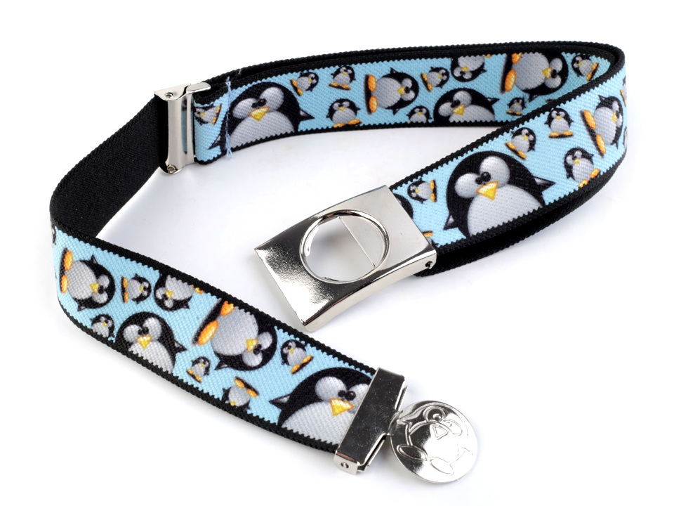 Pružný dětský pásek s potiskem má dlouhou životnost díky kvalitní české výrobě. Díky ozdobné sponě, na které můžete nalézt např. motýla, hvězdu, srdíčko, fotbalový míč, tučňáka apod. je vhodný pro dívky i chlapce.
