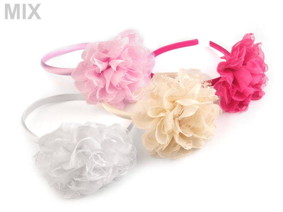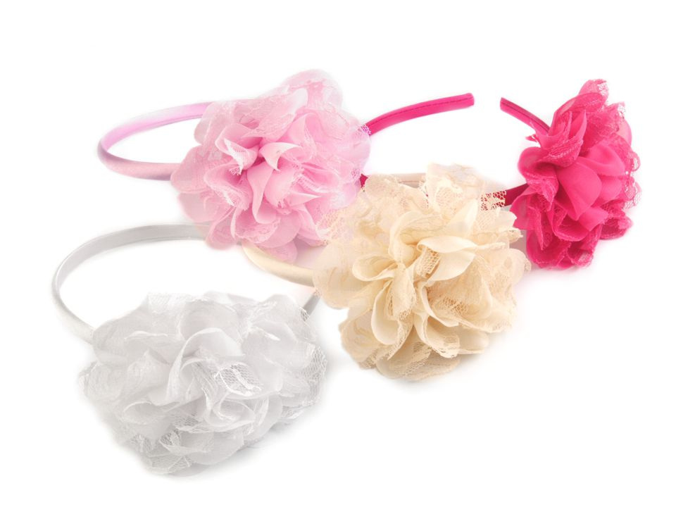 Dívčí čelenka s velkým krajkovým květem potěší malé i větší parádnice.