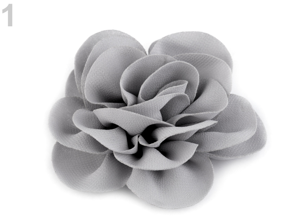 Textilní květ z dvojitého šifonu působí romanticky. Díky bohatým okvětním plátkům má nadýchaný vzhled.