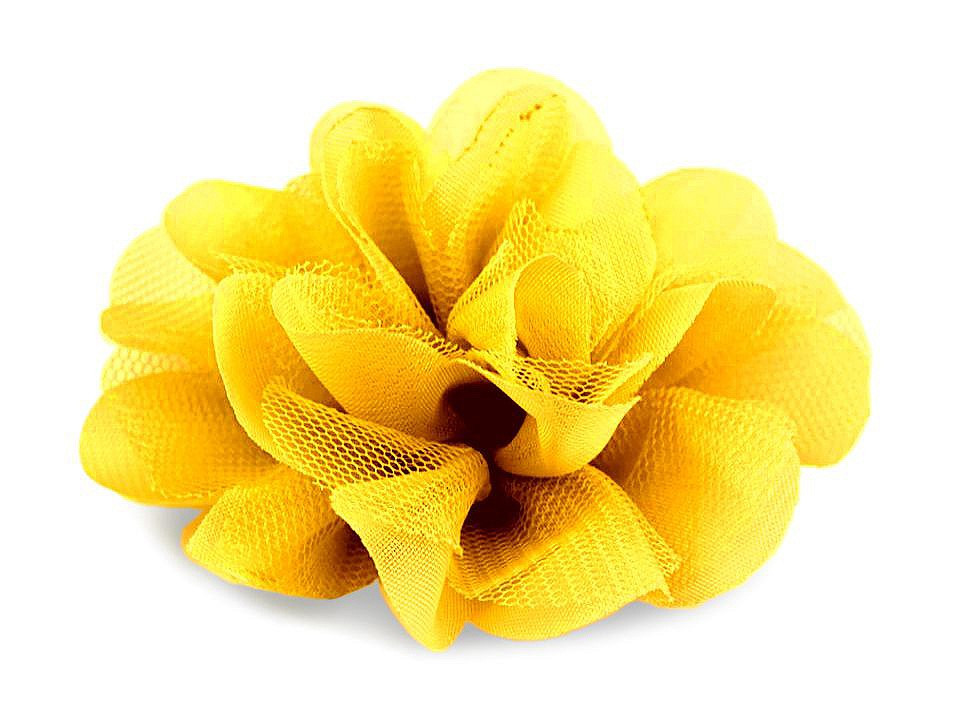Použití: Květ můžete našít jako ozdobu na společenské šaty, halenky, trička nebo svetry. Je vhodný i na zdobení klobouků, čepic a čelenek do vlasů. Můžete ho také pomocí lepidla přilepit na brožový můstek a vytvořit zajímavý šperk.