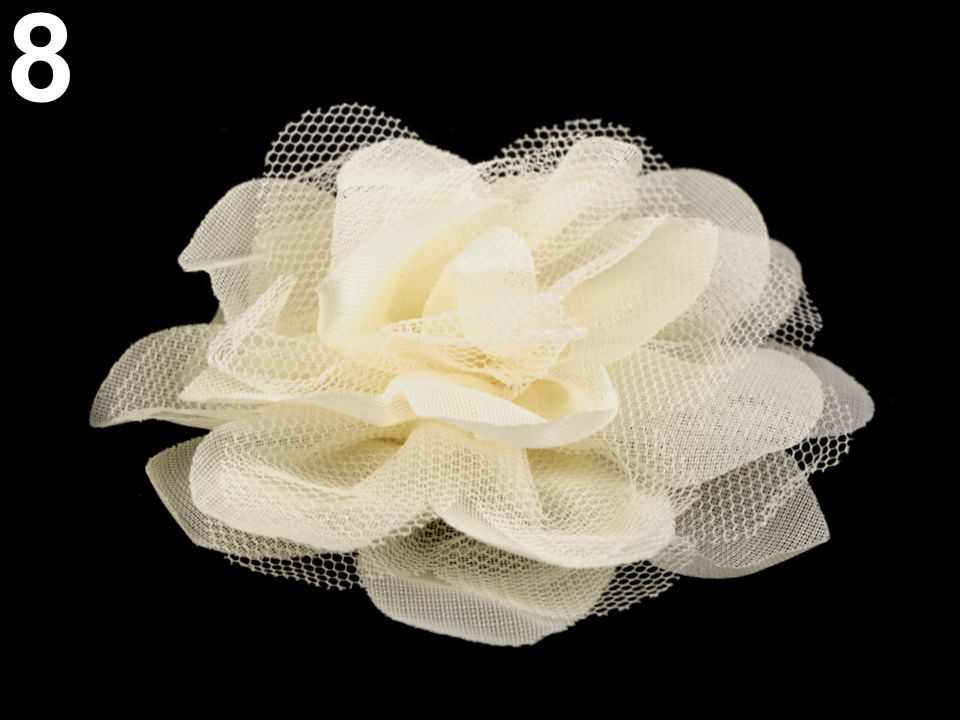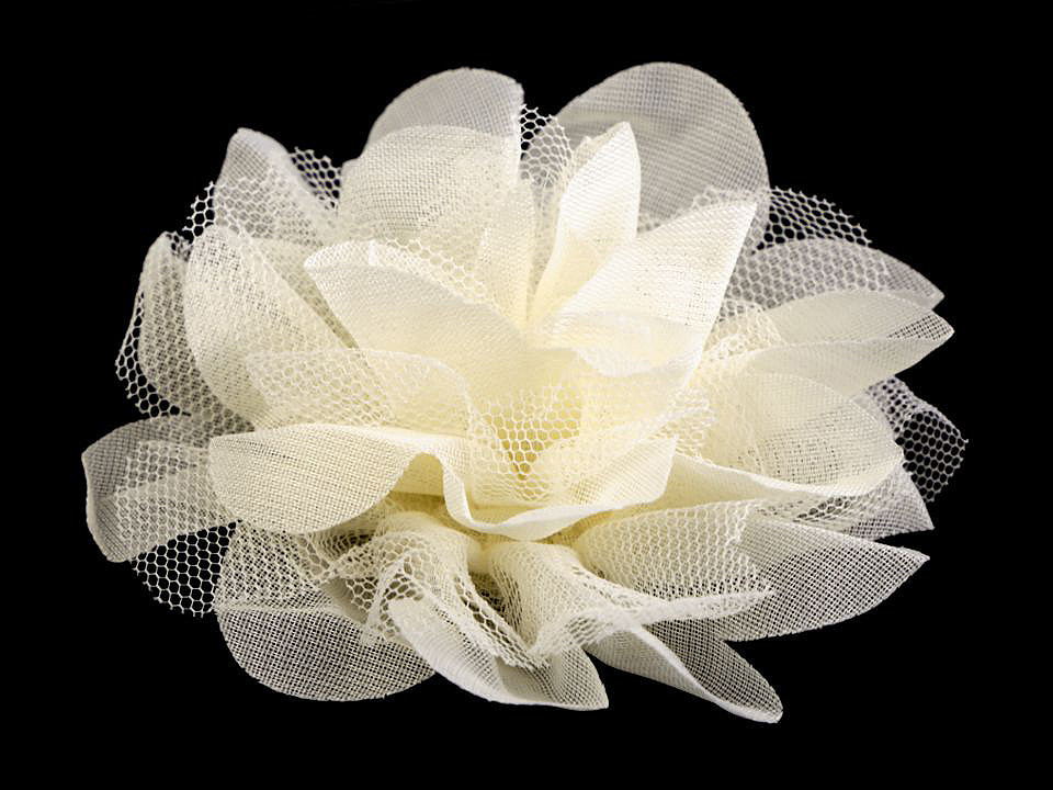 Romantický textilní květ má široké možnosti využití. Díky bohatým okvětním plátkům má nadýchaný vzhled.