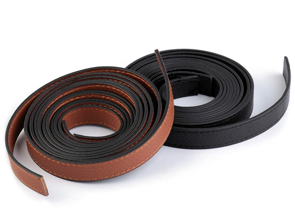 Obšité řemínky k výrobě uch na tašku jsou kvalitní a pevné, vyrobené z eko kůže. Můžete je buď přímo přišít nebo pomocí kroužků a karabinek připnout ke kabelce.
