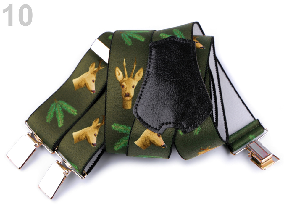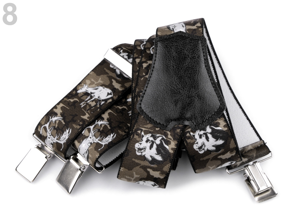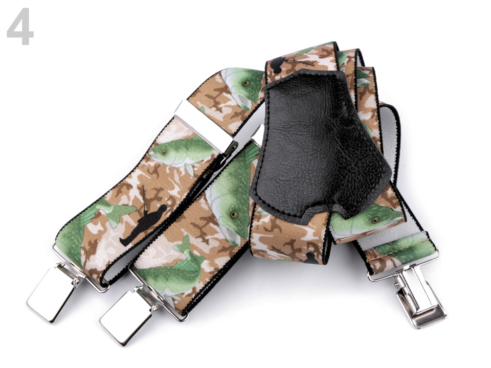 Kšandy s potiskem s mysliveckými a rybářskými motivy potěší především muže s loveckými koníčky. Kšandy bývají nedílnou a zároveň praktickou součástí jejich oblečení.