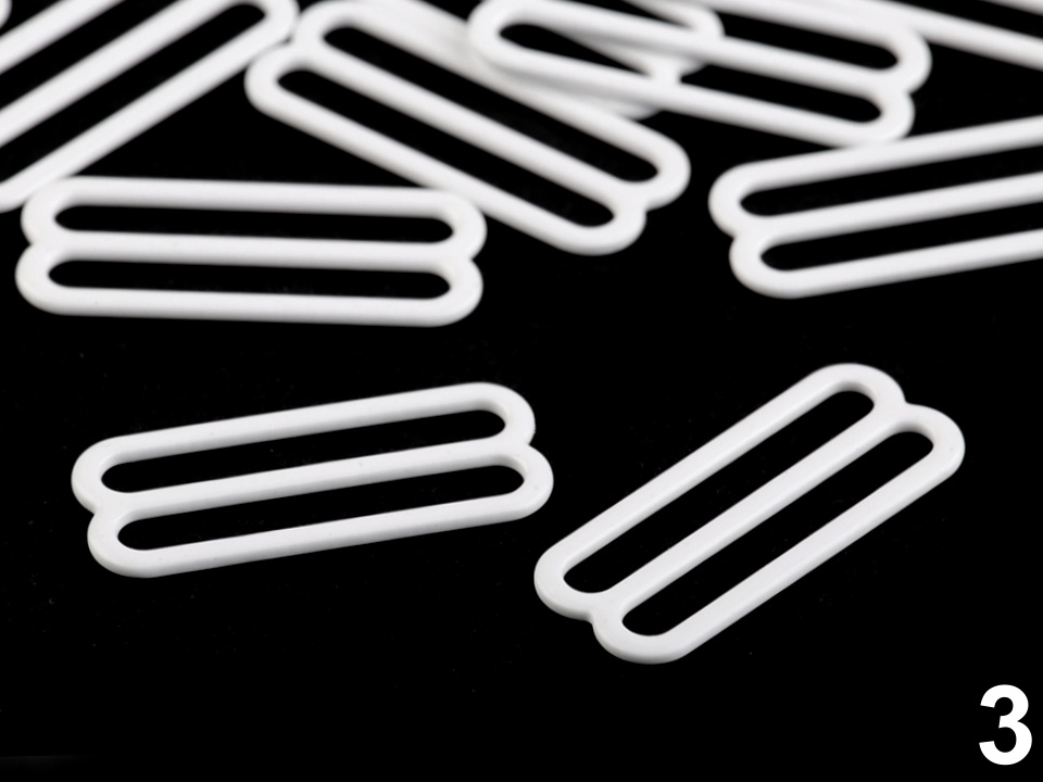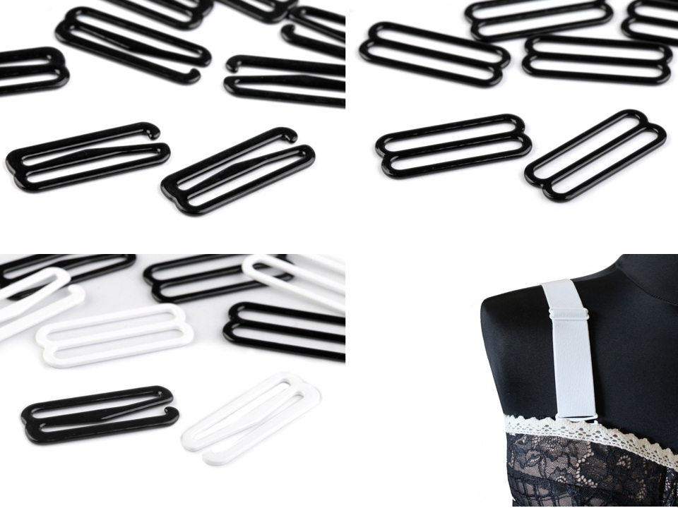 Široký kovový háček a posunovač využijete na spodní prádlo. Háčkem a kroužkem můžete připevnit ramínka k podprsence nebo pásku na záda. Posunovačem upravíte ramínka podprsenky na správnou délku.
