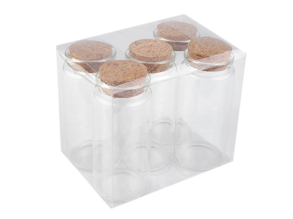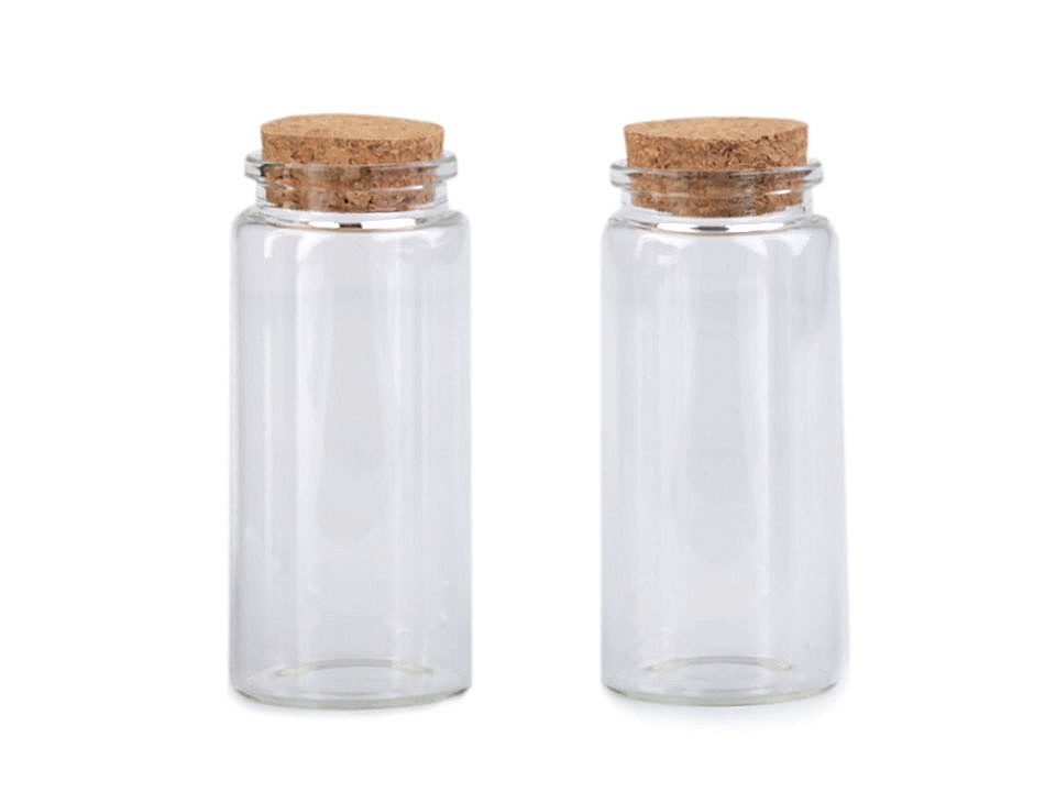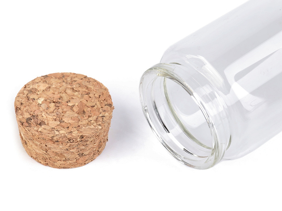 Skleněná dóza je díky korkovému uzávěru nejen velmi hezká, ale i praktická. Můžete do ní nasypat korálky, bižuterní komponenty či jiné drobné věci.