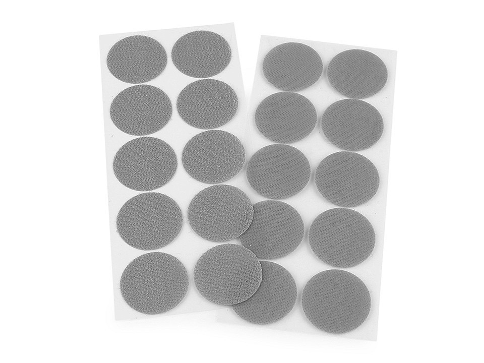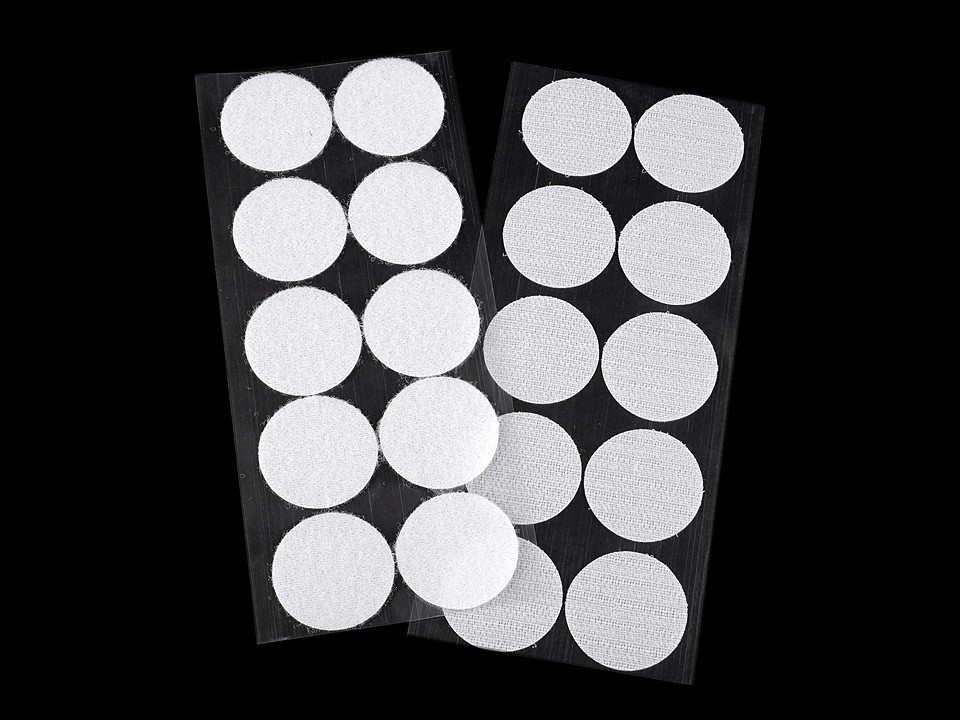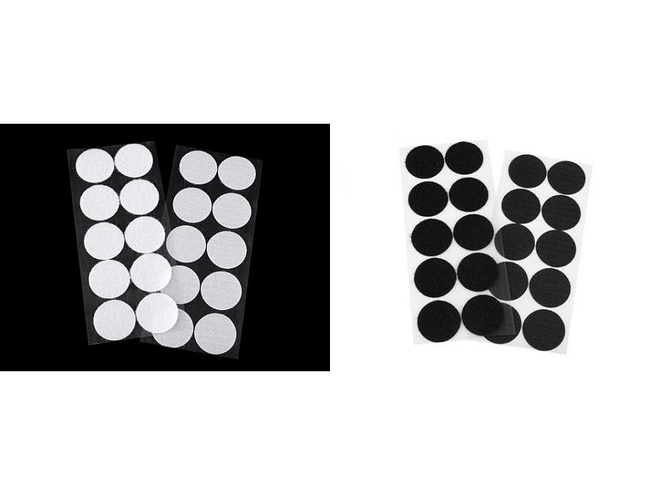 Suchý zip ve tvaru koleček slouží ke spojení různých materiálů. Je samolepící, tudíž ho bez větších obtíží připevníte. Můžete jím připevnit reklamu, nápisy, obrázky apod.