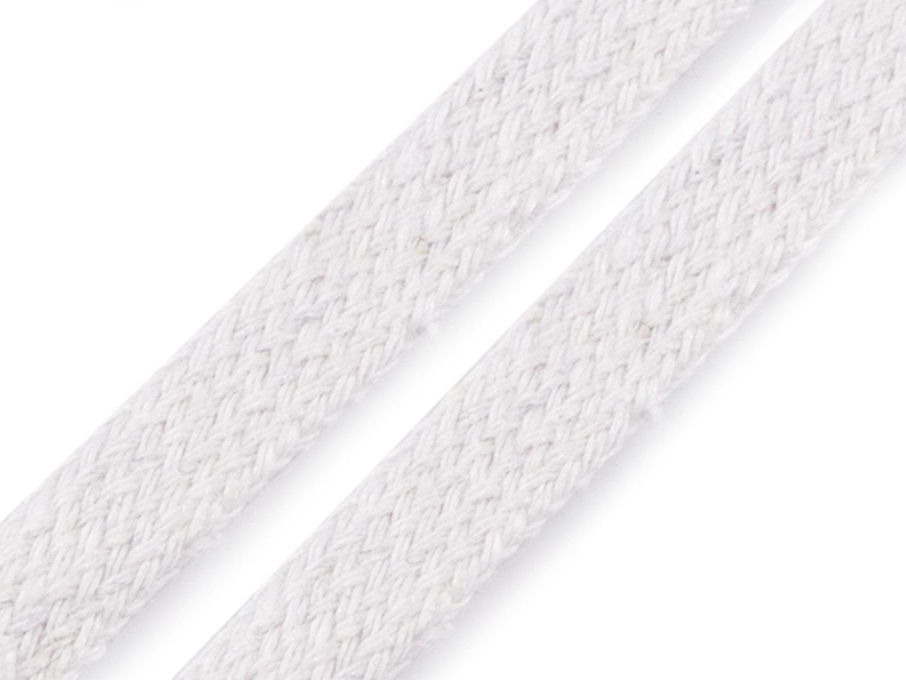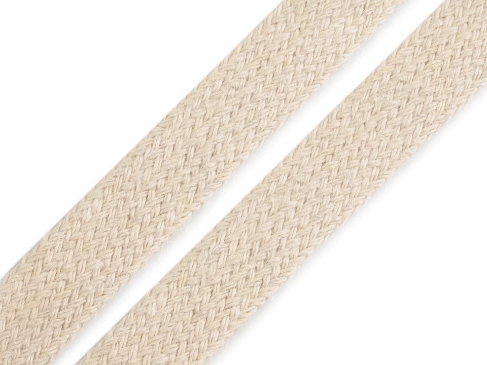 Přírodní plochá šnůra ze 100% bavlny je vhodná pro výrobu konfekce. Má tvar ploché dutinky, je pevná a odolná.