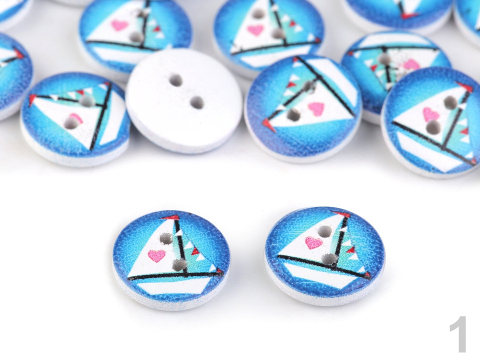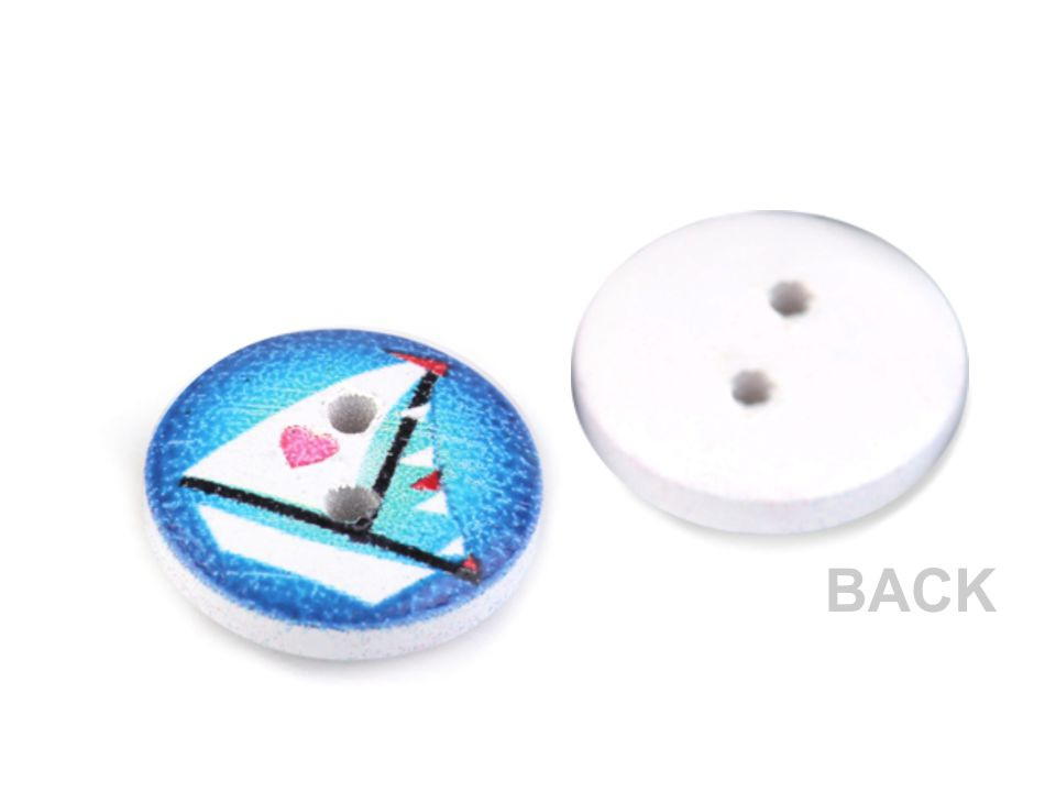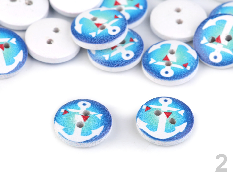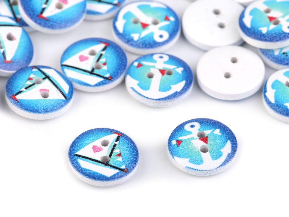 Dřevěné knoflíky s potiskem námořních motivů můžete použít ve scrapbookingu. Ozdobí vaše foto rámečky, alba, deníky, přáníčka a pozvánky.