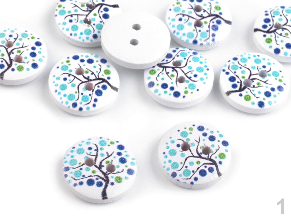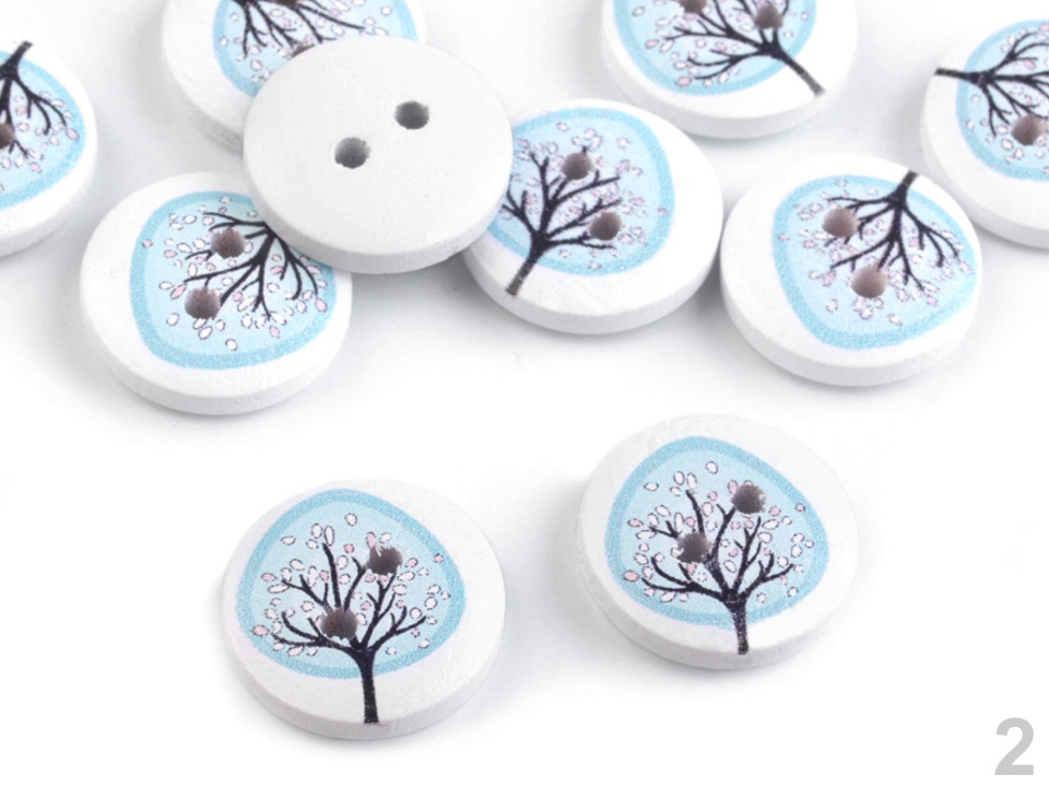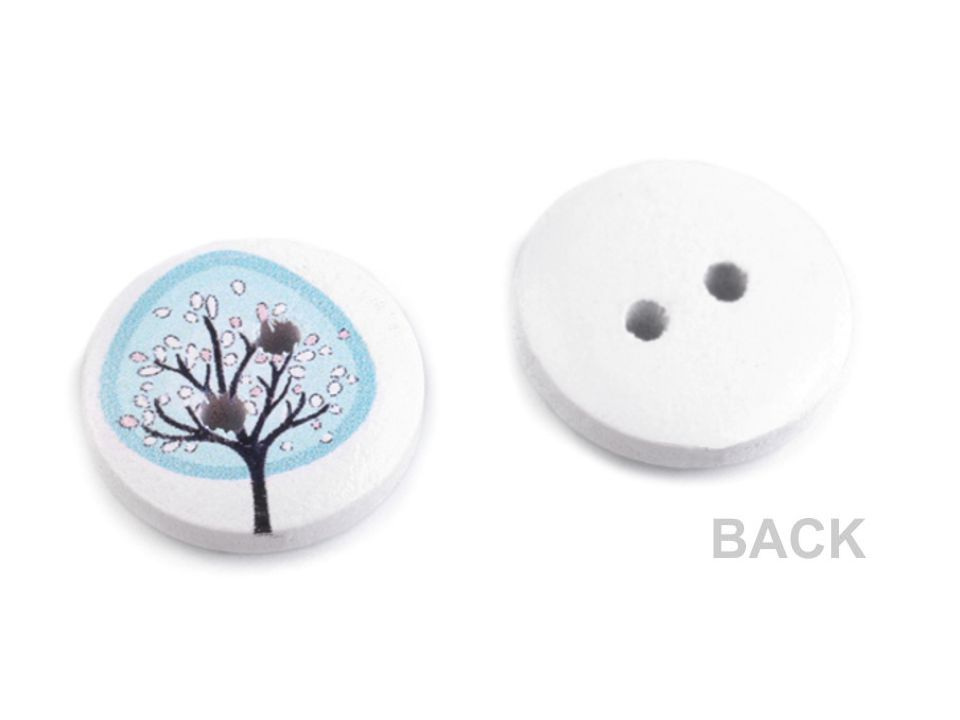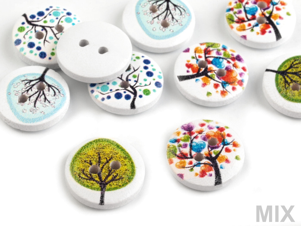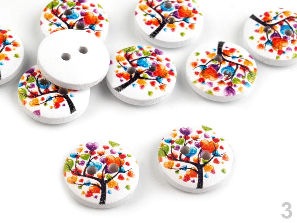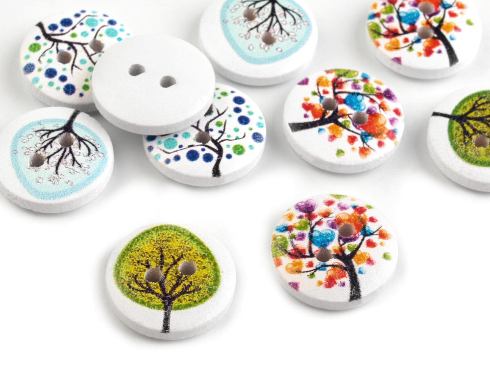 Dřevěné dekorační knoflíky s potiskem stromu můžete použít ve scrapbookingu. Ozdobí vaše foto rámečky, přáníčka, jmenovky, pozvánky, deníky apod.