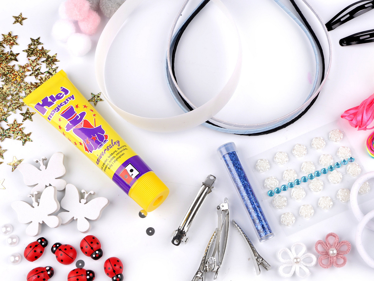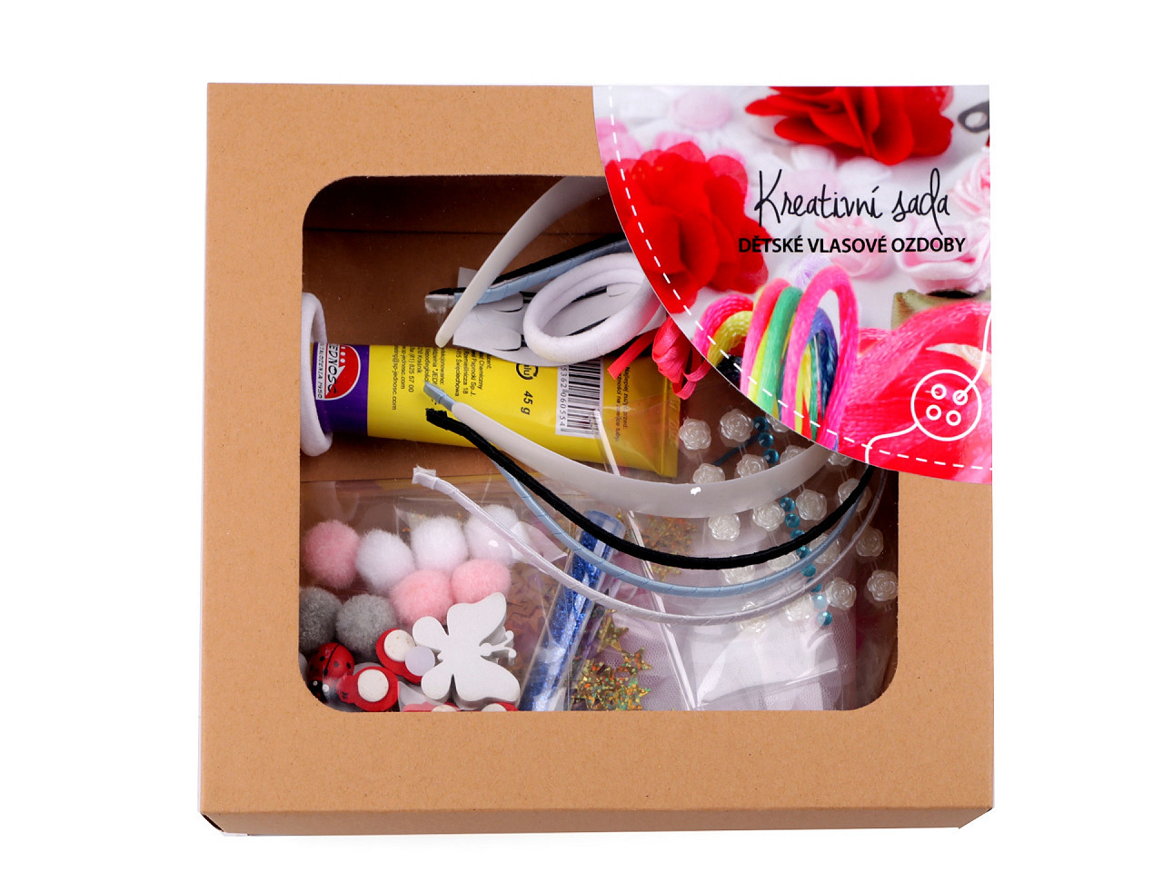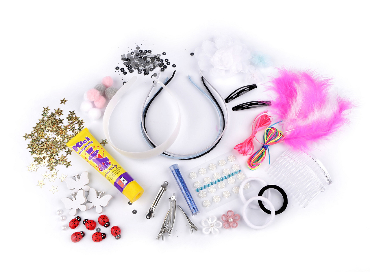 S kreativní sadou si můžete vyrobit vlastní vlasové ozdoby. Je sestavená z těch nejzajímavějších kousků z našeho obchodu, které se budou doslova kombinovat samy. Můžete mít každou ozdobu jinou nebo si naopak vytvořit celý sladěný set. Věříme, že vás i vaše děti naše kreativní sada nadchne.