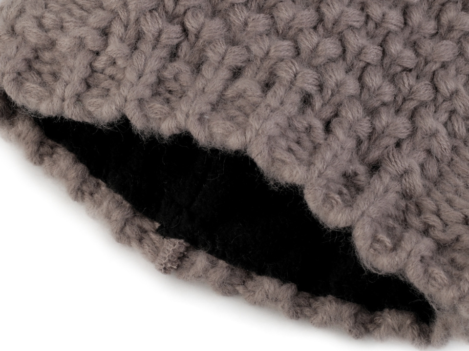 Její úplet má hrubou strukturu. Čepice vás bude hřát celou zimu, uvnitř je podšitá pásem teplého fleecu, který je velice příjemný na dotek. Okraj čepice je zpevněný pruženkou. Bambule je krásně probarvená, věrně imituje pravou kožešinu.