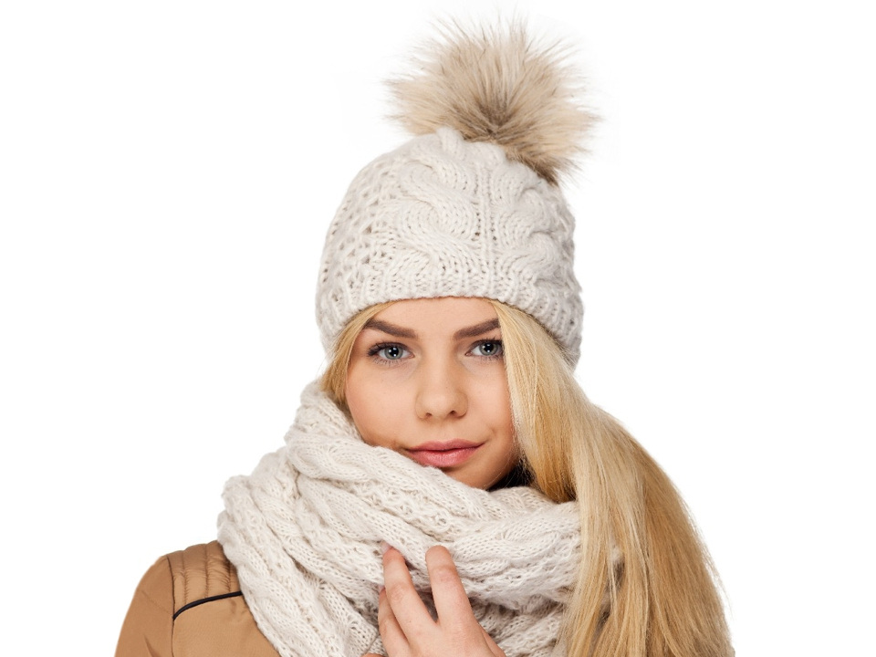 Pletená čepice s velkou bambulí a copánkovým vzorem sluší ženám všech věkových generací.