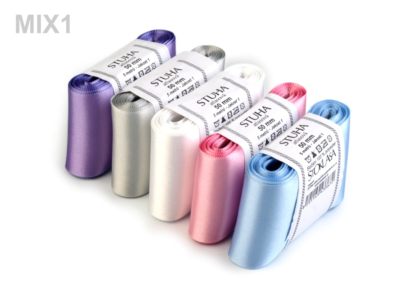 Oboulící atlasová stuha je pevná a jemně se leskne. Nepouští barvu.