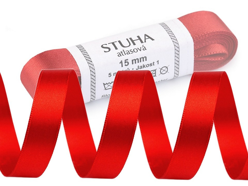 Atlasová stuha je oboulící. Elegantně se leskne. Nepouští barvu.