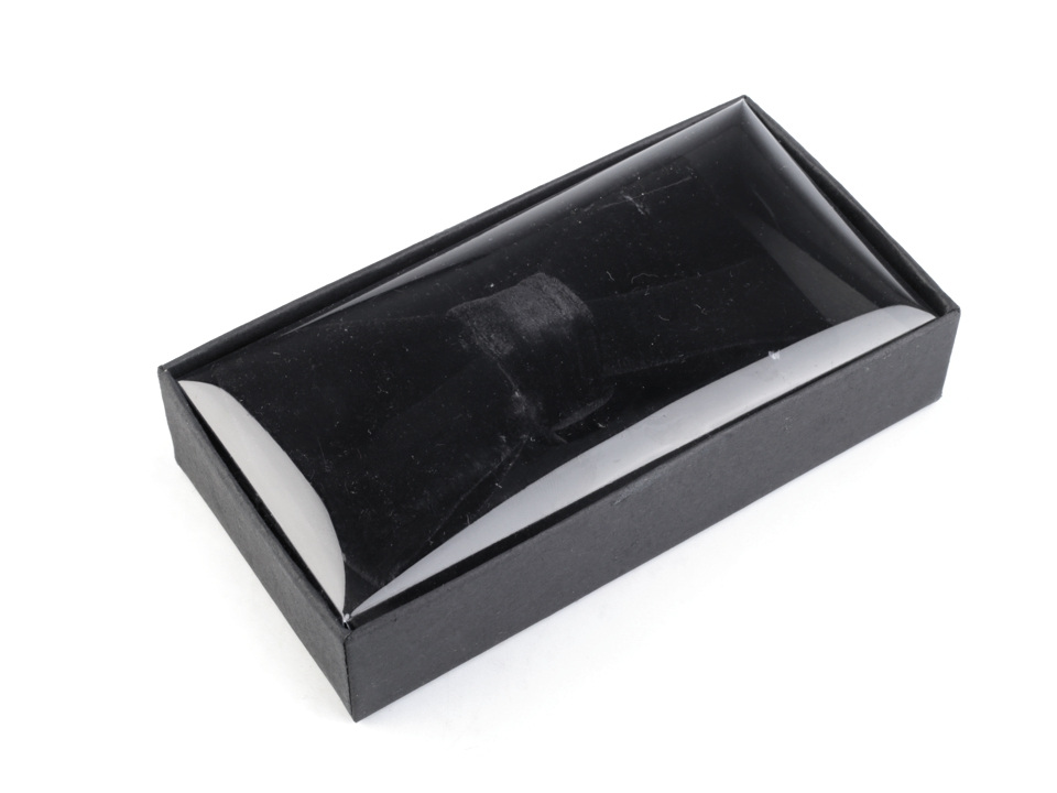 Krabička pro uložení motýlka je široká 7 cm, dlouhá je 14 cm. Její výška je 3 cm. Víko má průhledné, hodí se pro vystavení motýlka v obchodě.
