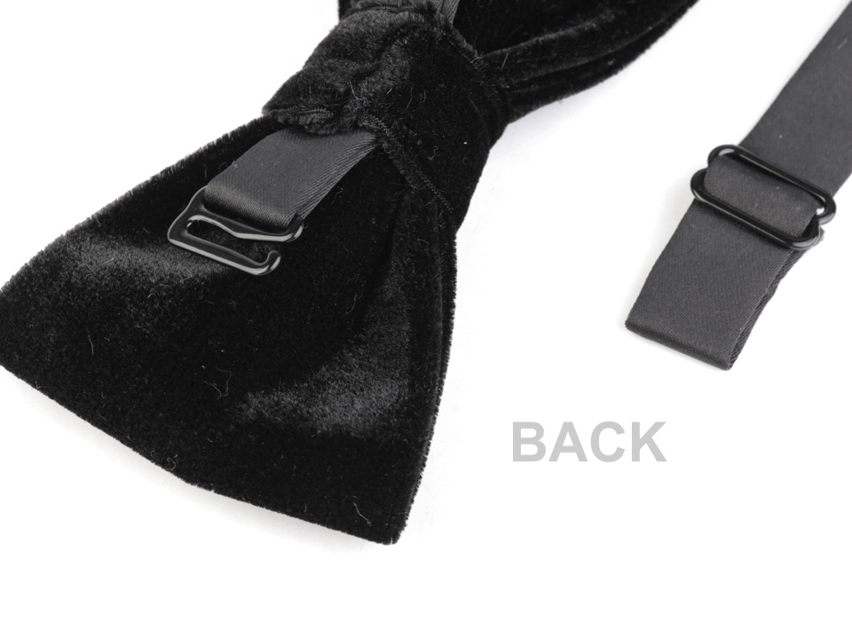 Dá se přizpůsobit různým šířkám krku. Nejdelší délka motýlka okolo krku je 49 cm. Tato délka se dá zkrátit na potřebnou velikost, aby motýlek přesně seděl. Zapínání je kovové, pásek je ze saténu.