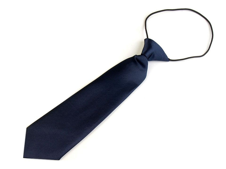 Kravatový uzel je pevný, nerozvazuje se, kravata je na gumičku kolem krku.