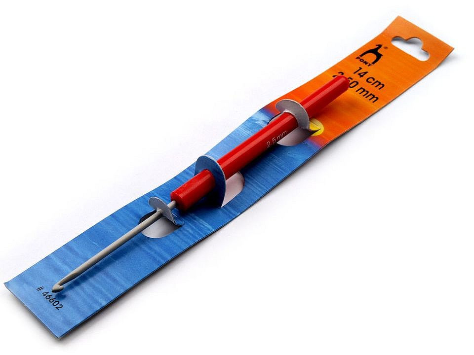 Háček je vhodný na háčkování vlny. Je vyroben ze slitiny hliníku a opatřen plastovou rukojetí pro pohodlnější uchopení. Můžete si vybrat z velikostí 2, 2,5, 3 a 3,5. Délka všech háčků je 14 cm.Složení: hliník plast