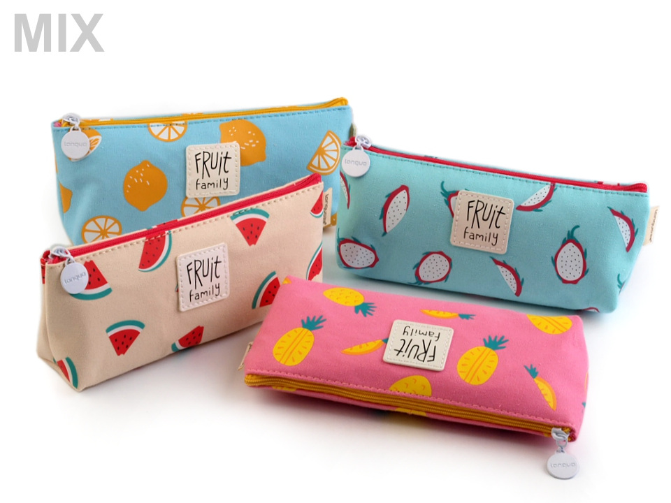 Stylové bavlněné pouzdro s potiskem tropického ovoce využijete na tužky i jiné drobnosti. Pohodlně se vejde do kabelky, může vám dělat společníka v práci či ve škole. Pouzdro můžete také použít na brýle, mobil apod.