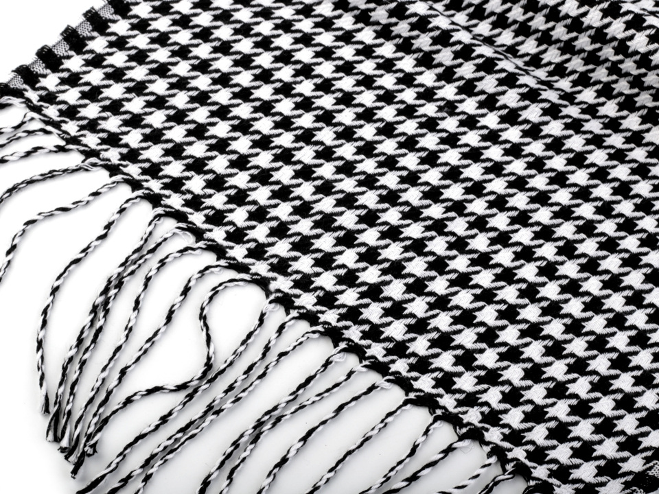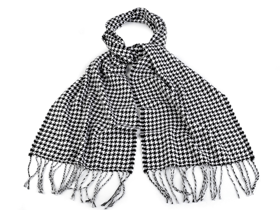 Šála se vzorem kohoutí stopy je nadčasová. Kohoutí stopa se objevuje v zimních kolekcích mnoha renomovaných značek. Oživí váš jednobarevný outfit a dá mu trendy vzhled.