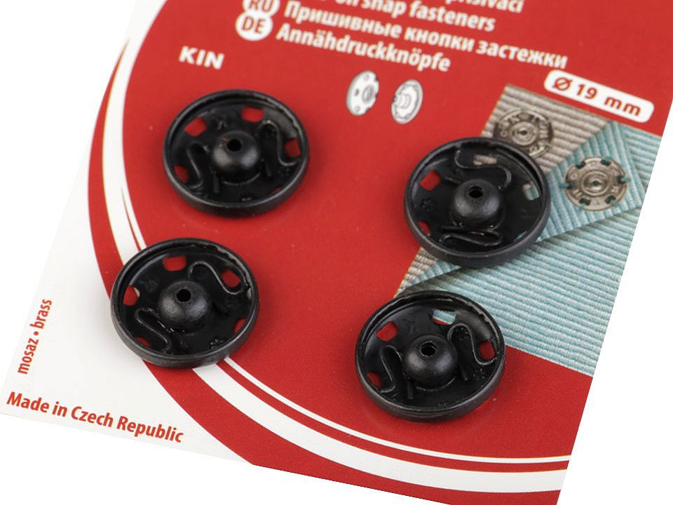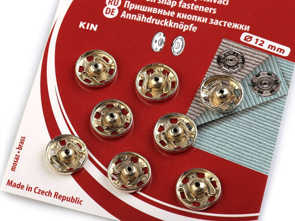 Velikost 4 má průměr: díl pérová část 12,4 mm, díl kulička 11,5 mm. Na kartě je 8 knoflíků.