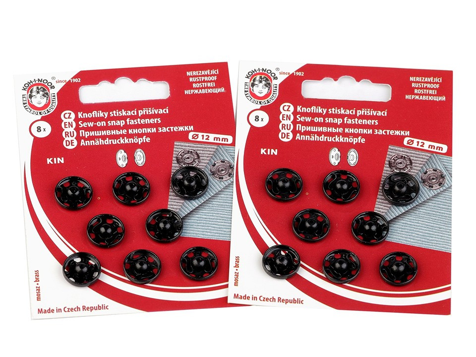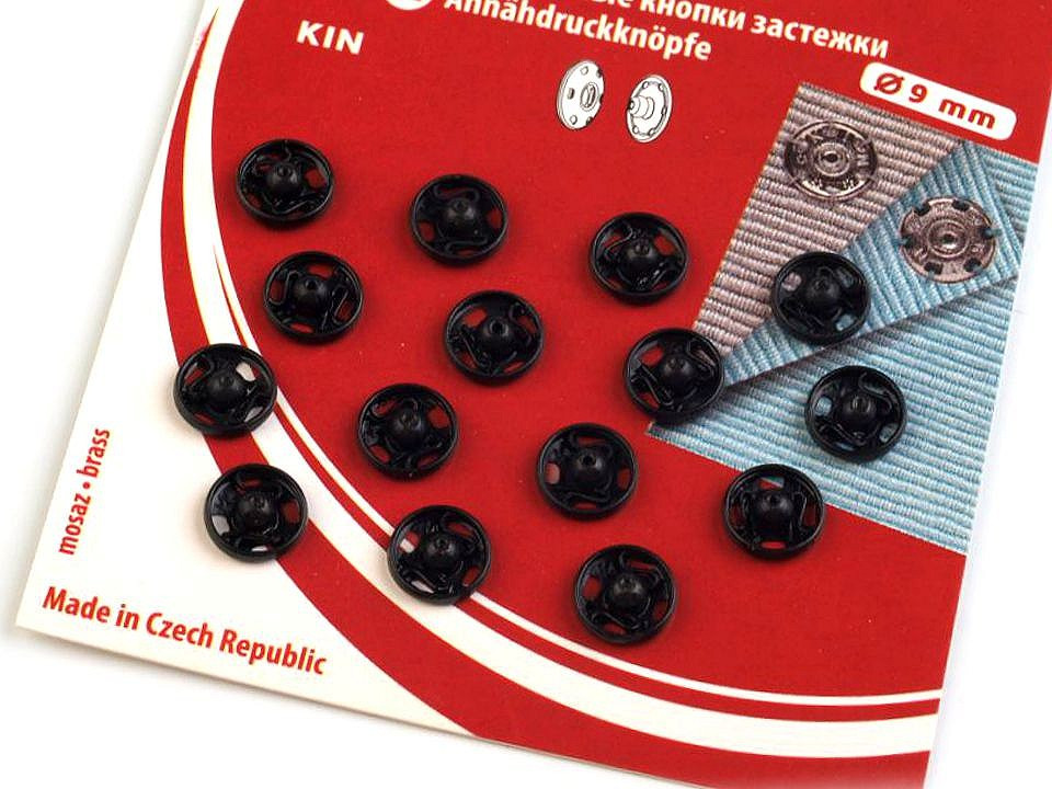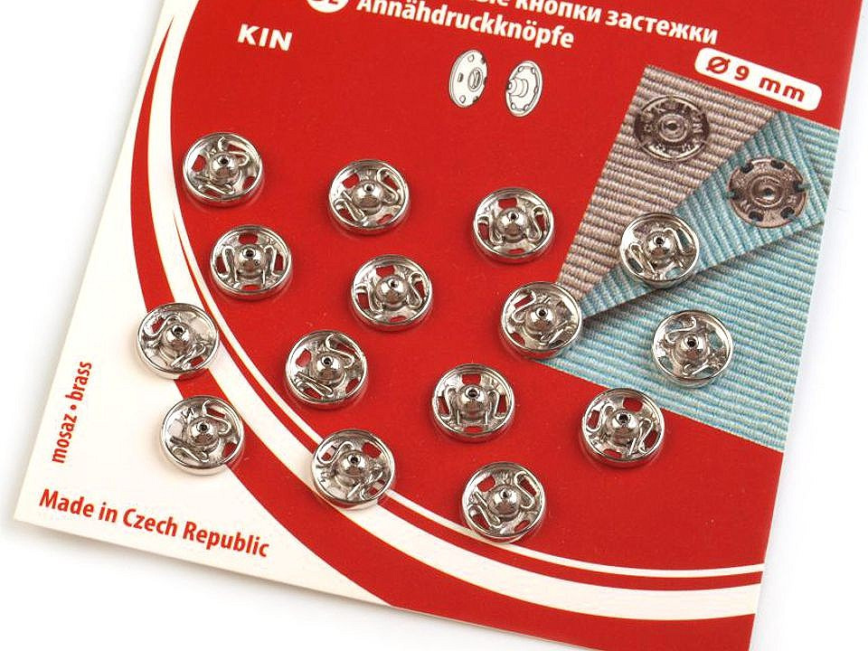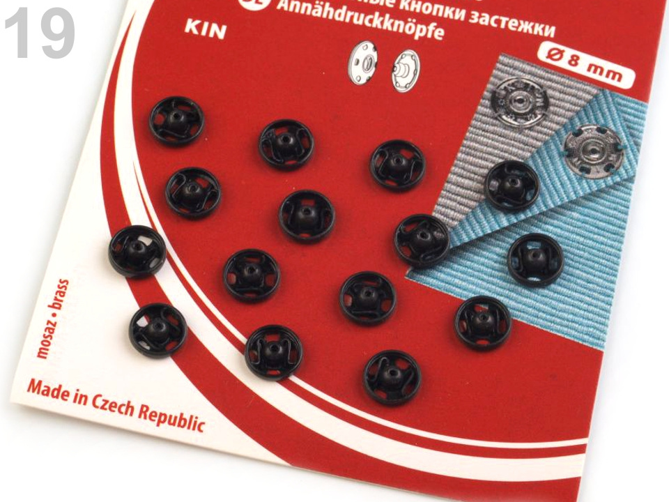 Velikost 3 má průměr: díl pérová část 11 mm, díl kulička 10 mm. Na kartě je 8 knoflíků.