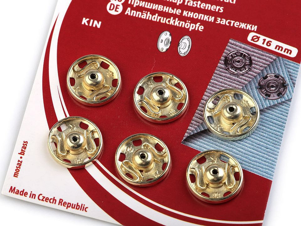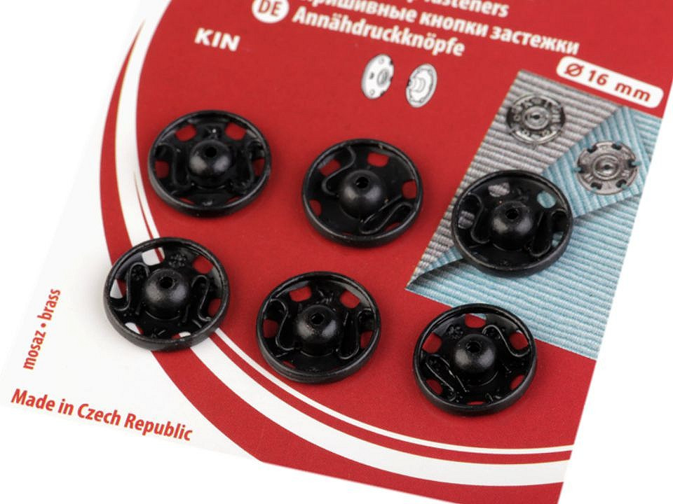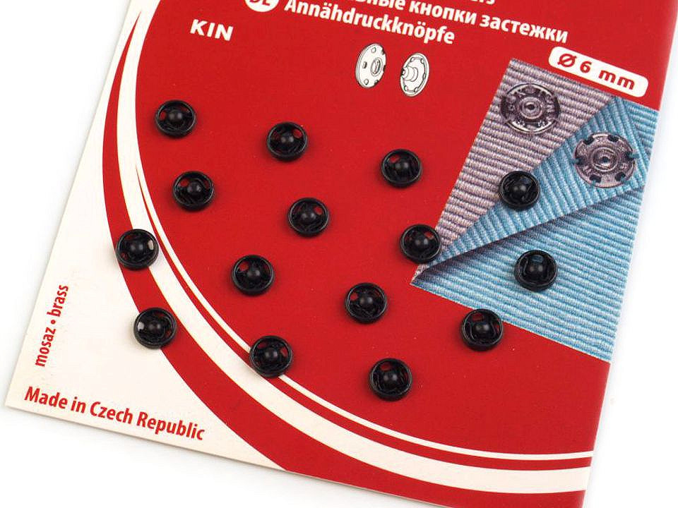 Velikost 6 má průměr: díl pérová část 15,9 mm, díl kulička 15 mm. Na kartě je 6 knoflíků.