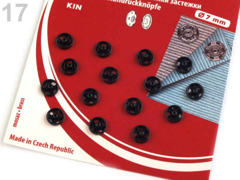 Velikost 5 má průměr: díl pérová část 13,9 mm, díl kulička 13 mm. Na kartě je 6 knoflíků.