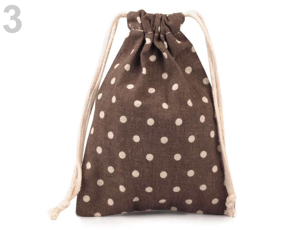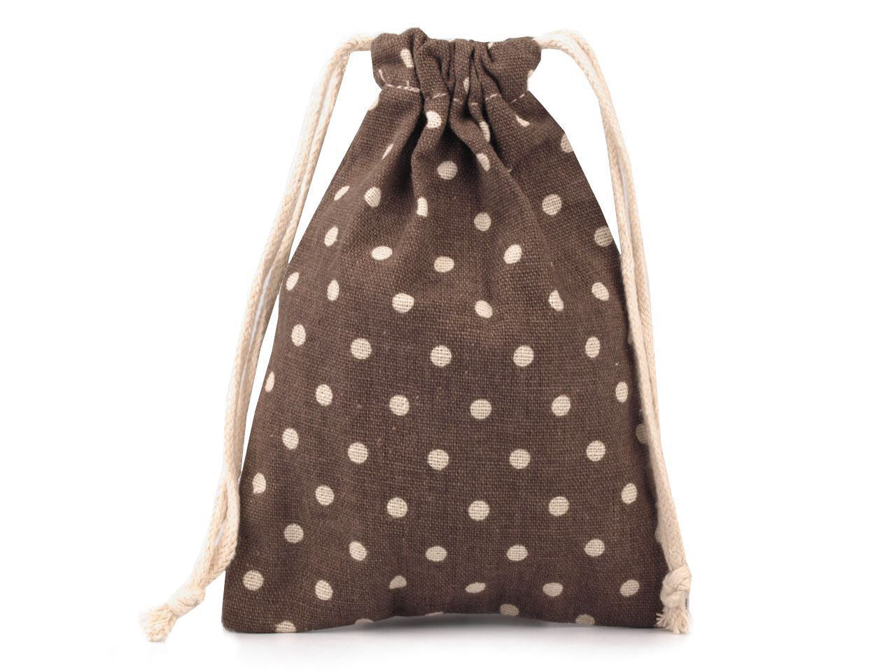Lněný pytlík je vyrobený z kvalitního a pevného materiálu. Snadno se uzavírá pomocí dvou bavlněných stahovacích šňůrek. Má veselý puntíkovaný design.