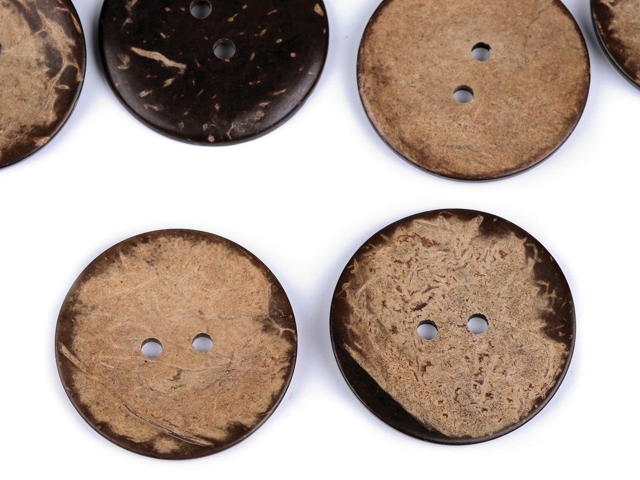 Průměr 38 mm. Knoflíky z kokosu jsou velmi žádáné, lze je použít z obou stran.Průměr dírky je 5 mm. Složení: kokos