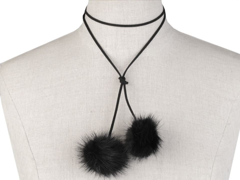 Dlouhý náhrdelník choker s bambulkami z pravé kožešiny hravě doladí váš outfit.
