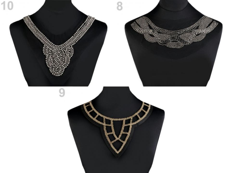 Vsadka s korálky, jenž jsou přišité na tylu, luxusně dozdobí váš oděv. Vynikne na společenských a plesových šatech, halenkách, tunikách atd. Skvěle ozdobí i oděvy v boho stylu.