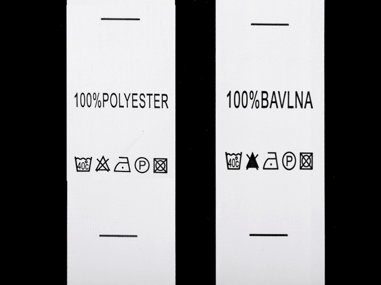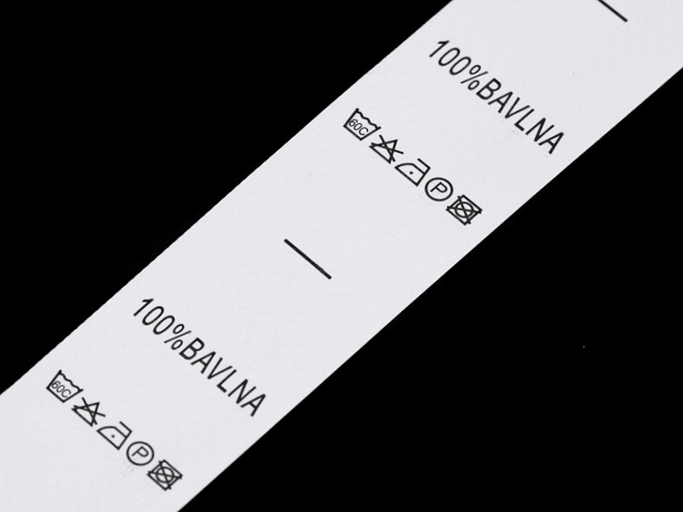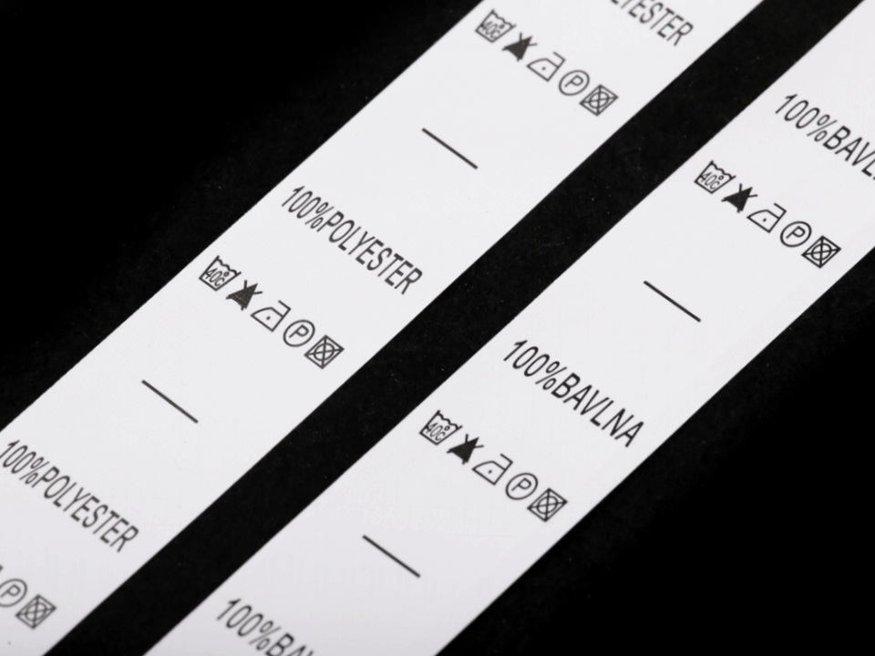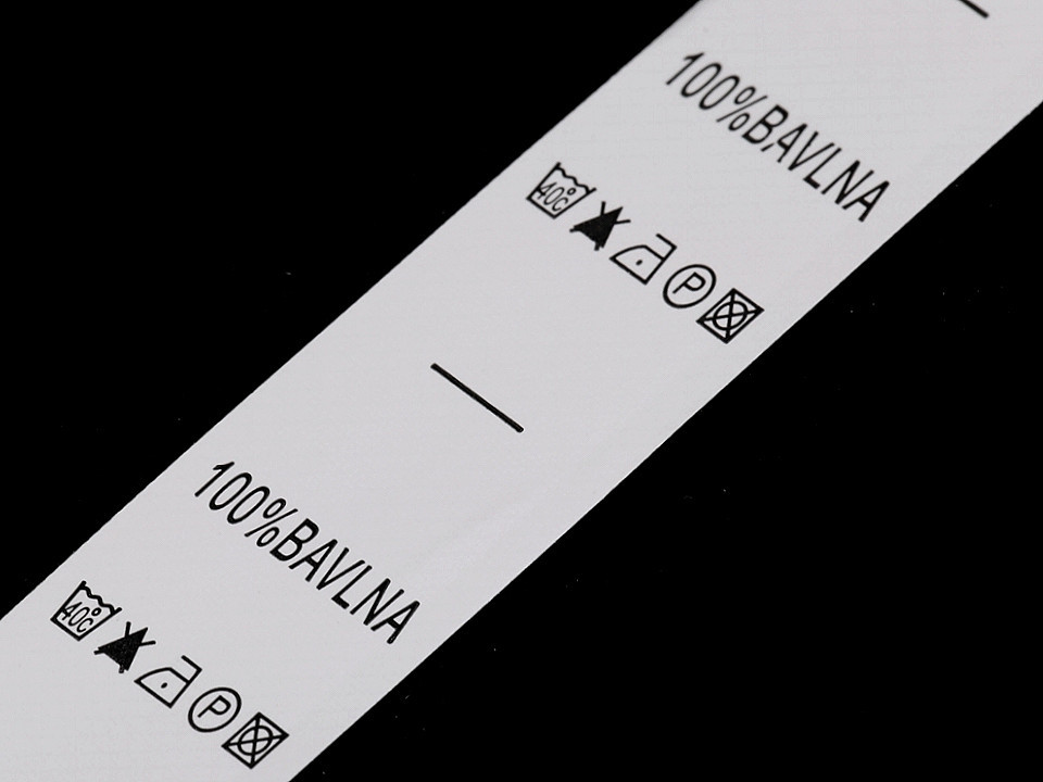 Štítky se složením a údržbou jsou vhodné pro šicí dílny. Jednoduše je všijete do oděvu. Lze je prát.