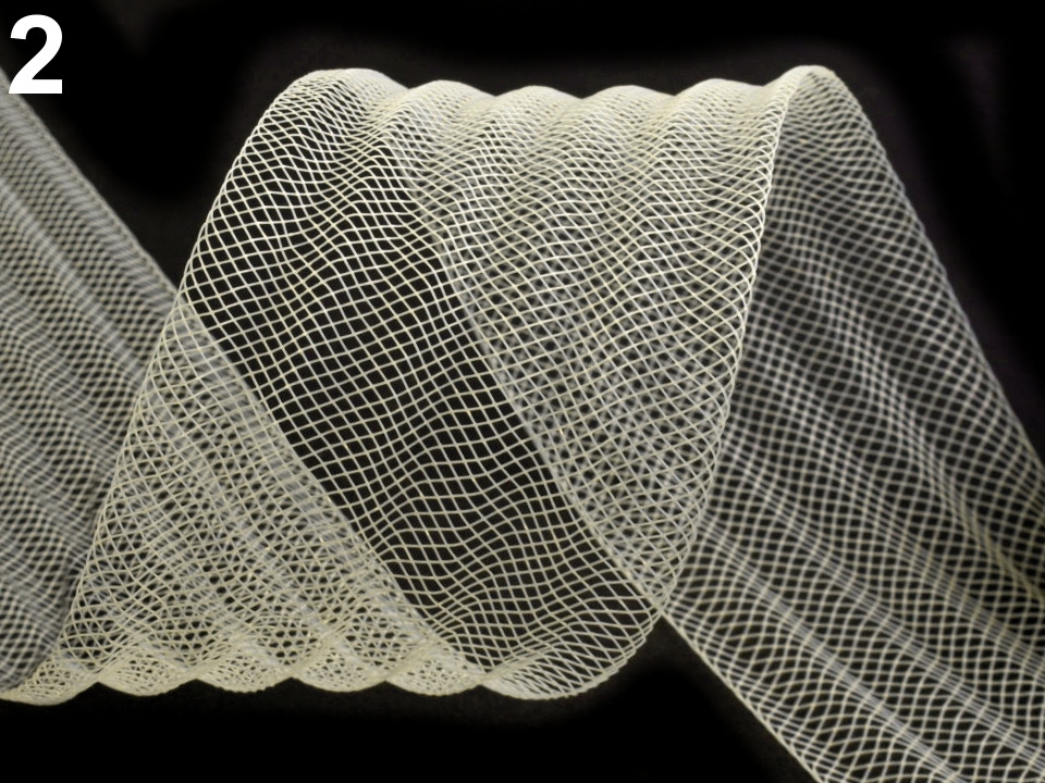 Jemná modistická krinolína má efektní vlnitý tvar. Je velice flexibilní a tvárná. Výborně drží svůj tvar.