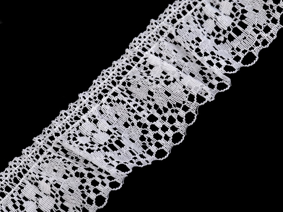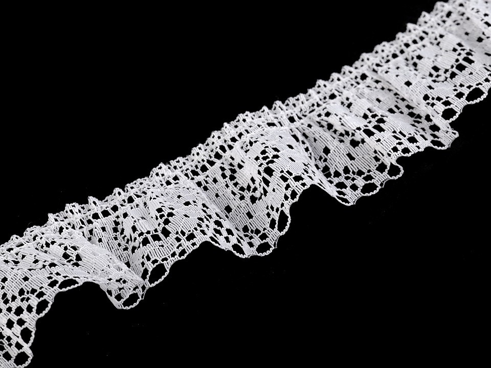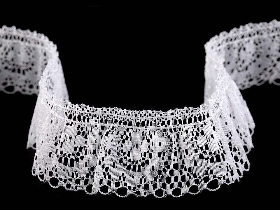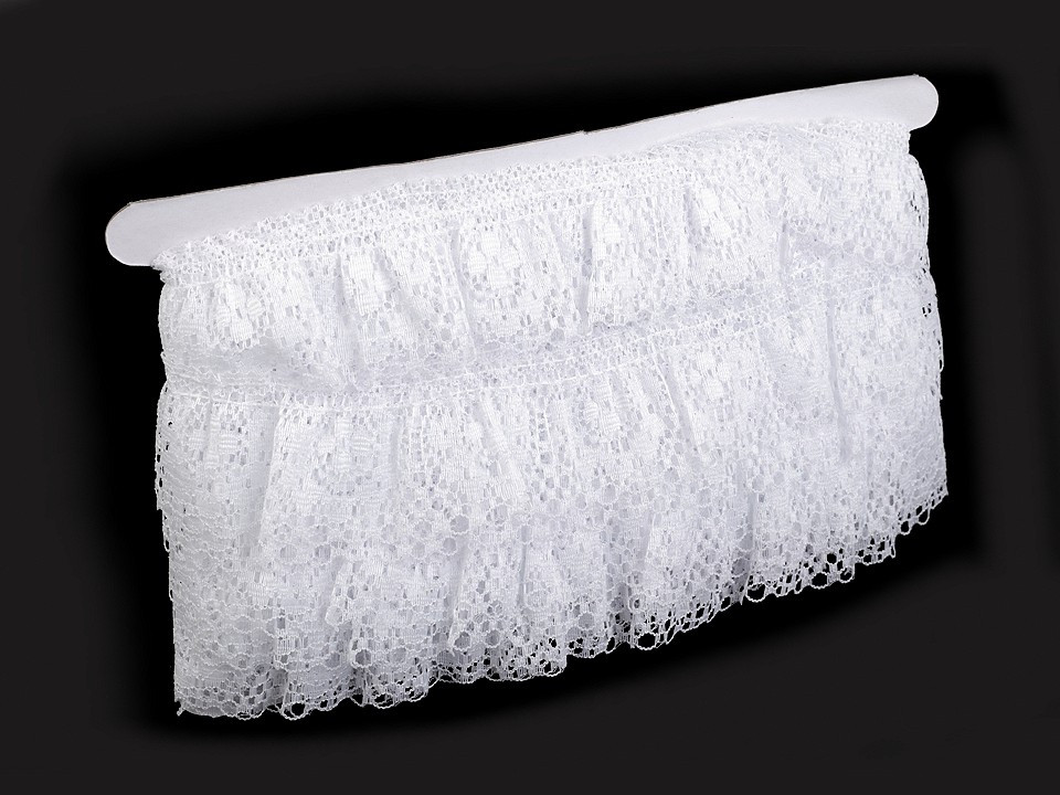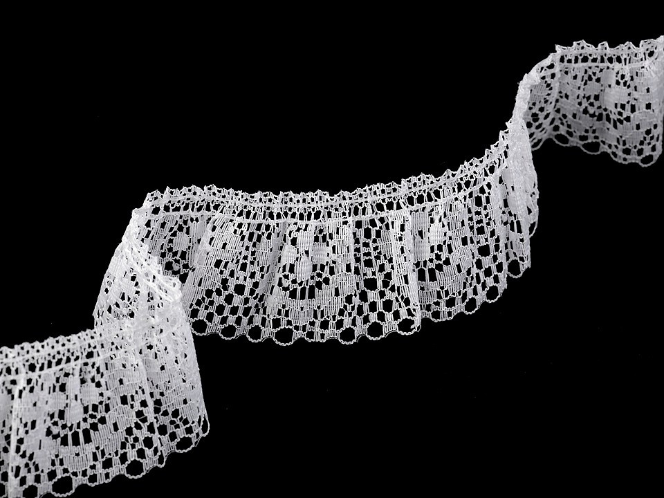 Použití: Krajkový volánek využijete na ozdobení podvazků, spodního prádla, šatů, sukní a halenek. Můžete jej také našít na bytové doplňky, například na polštáře, ubrusy nebo čelenky do vlasů.