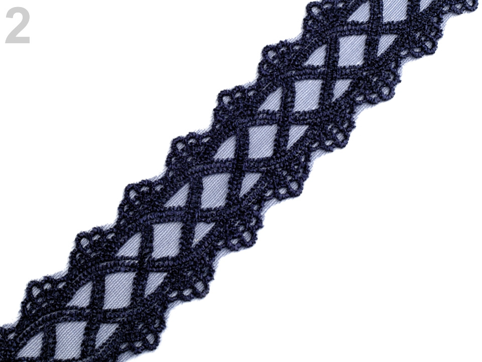 Vyšívaný prýmek zdobí pravidelný motiv, který je převážně tvořený z různých obloučků.