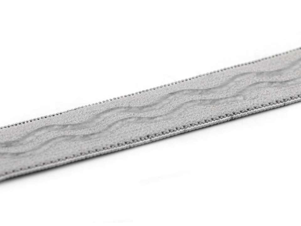 Pruženka má z jedné strany uprostřed 2 silikonové pásky v podobě vlnek, každý o šíři 2 mm. Díky silikonu je pruženka protiskluzová.