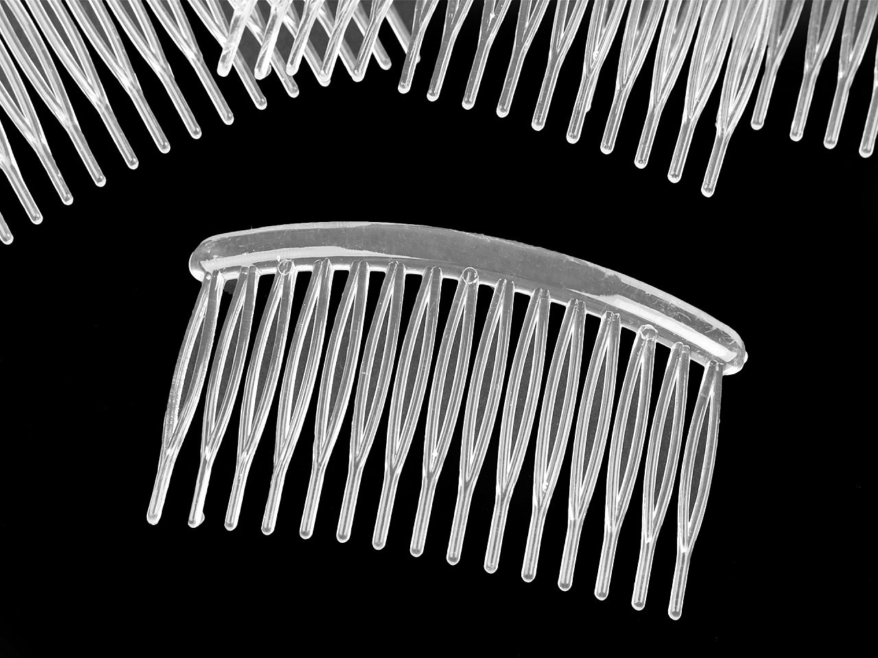 Dámský vlasový hřeben o rozměru 80 x 45 mm v krystalové barvě. Dají se mimo jiné použít do účesů pro nevěsty, ale také pro běžné užívání.