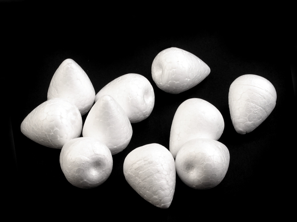 Polystyrenový základ díky svému designu připomíná poupě. Využijete ho na tvoření květin z foamiranu, kdy ho zakomponujete do středu květu, připevníte drátek a je hotovo.