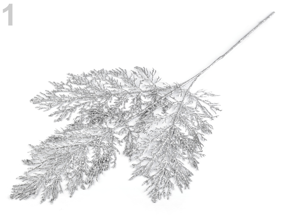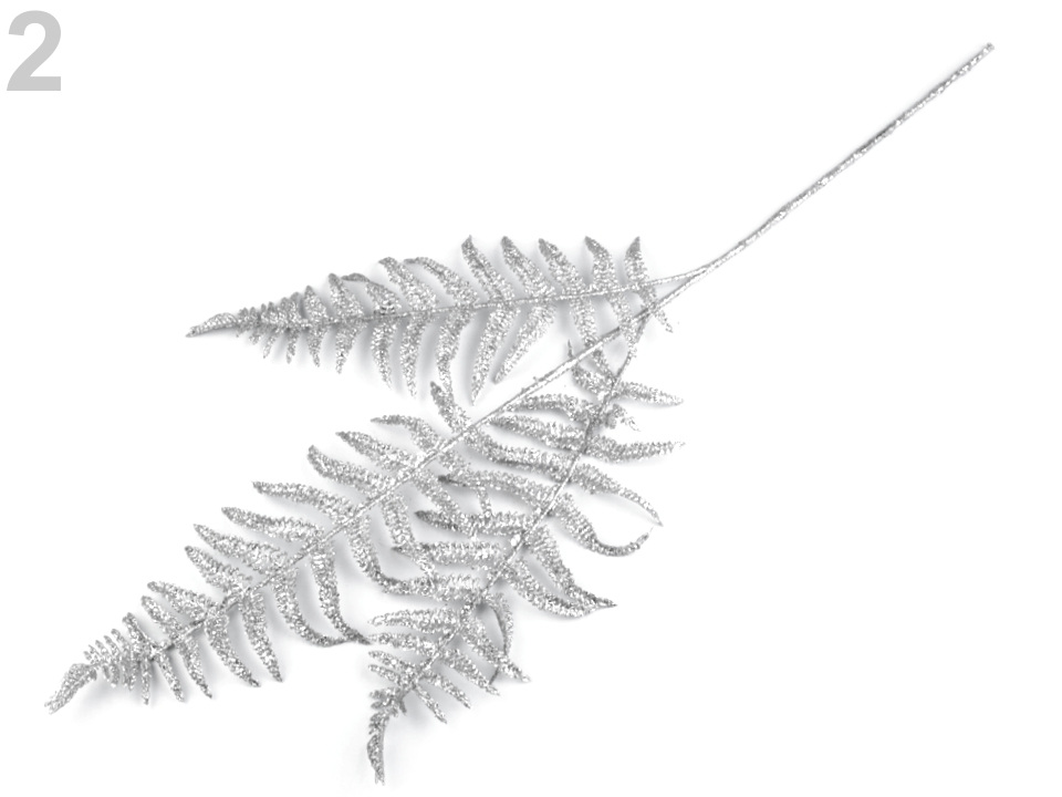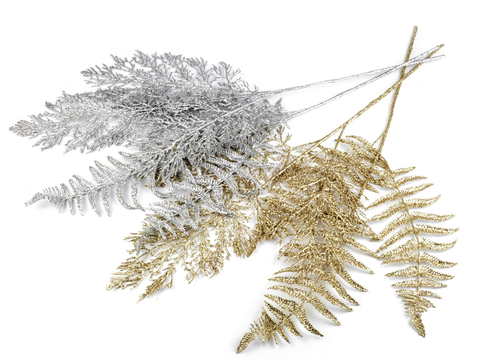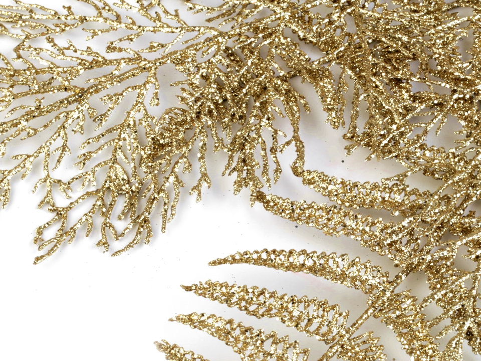 Dekorační větvička kapradí se díky glitrům krásně třpytí.