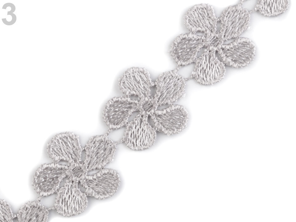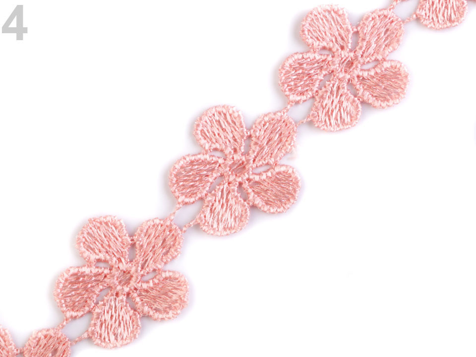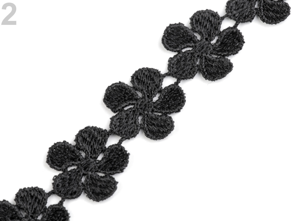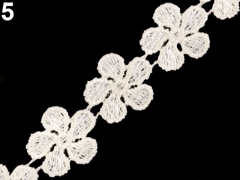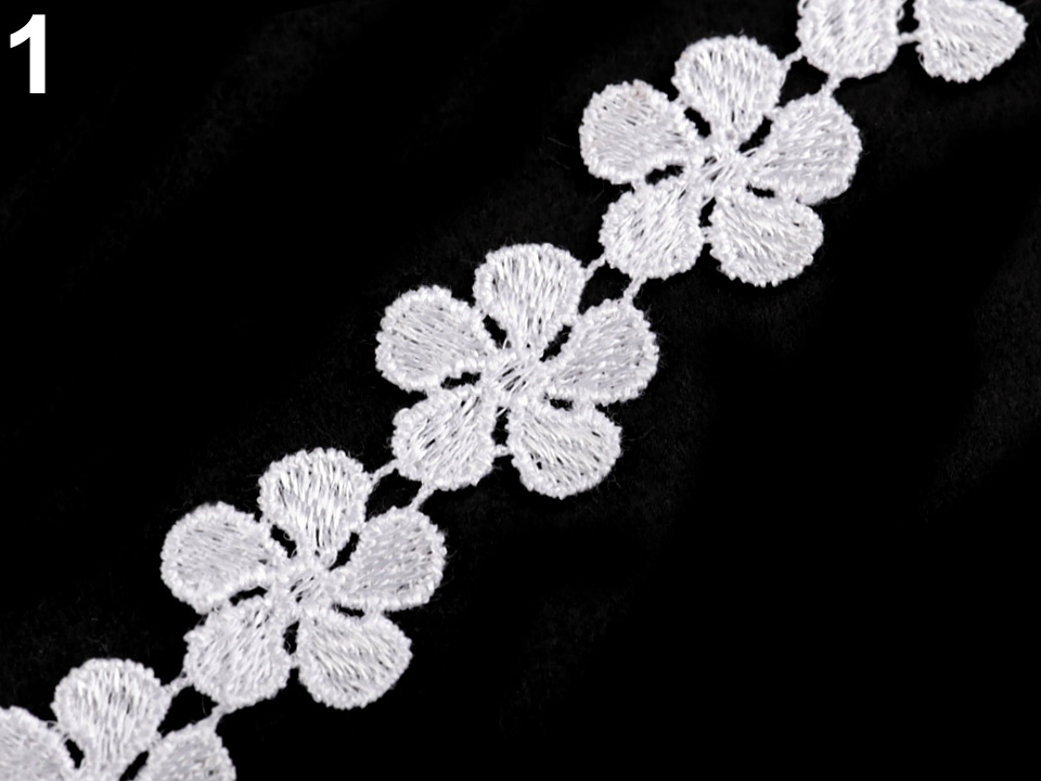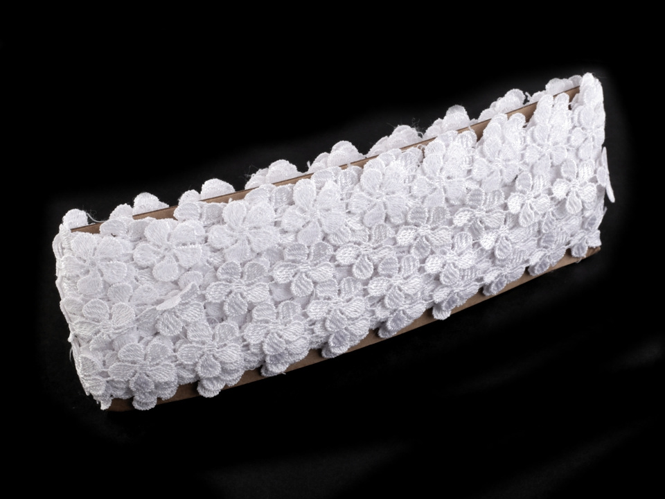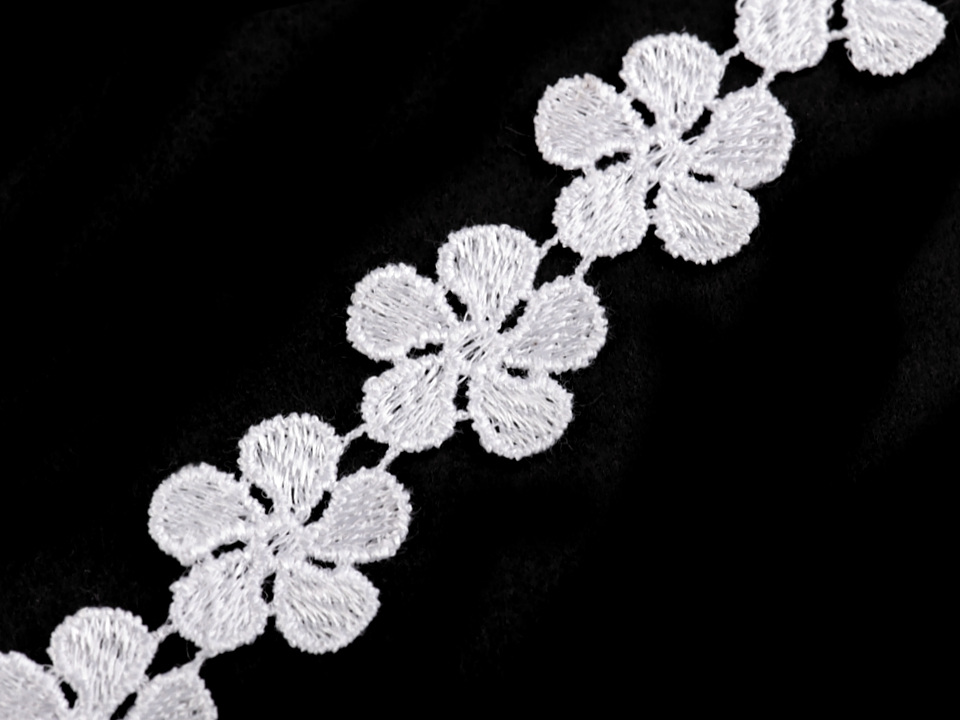 Použití: Má široké uplatnění. Nejčastěji se používá k olemování ubrusů, deček, k dekoraci šatů, sukní, halenek. Jednotlivé květy můžete nastříhat a pomocí textilního lepidla nalepit nebo přišít na oděv.