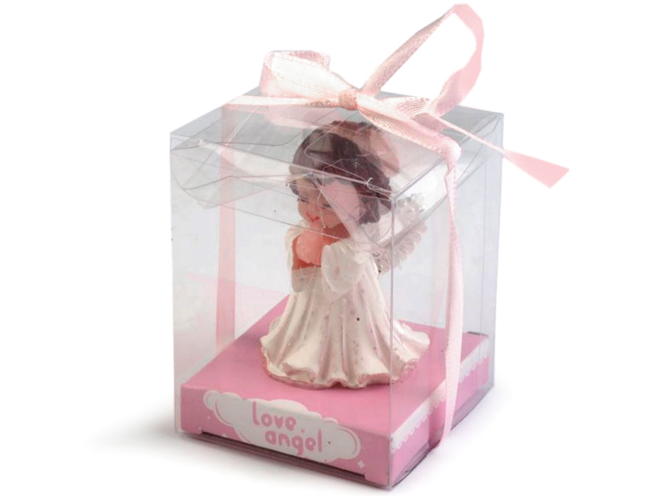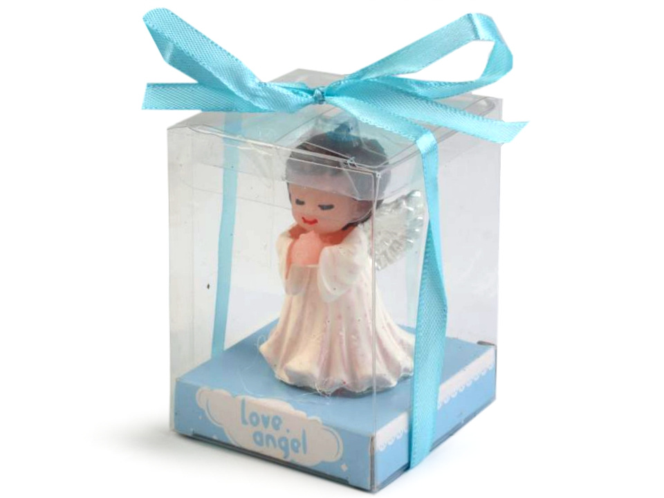 Roztomilou svíčkou anděla můžete obdarovat své blízké nebo použít jako dekoraci. Svíčka je přilepena k podstavci z tvrdého papíru. Je zabalená v plastové krabičce a převázaná mašlí.