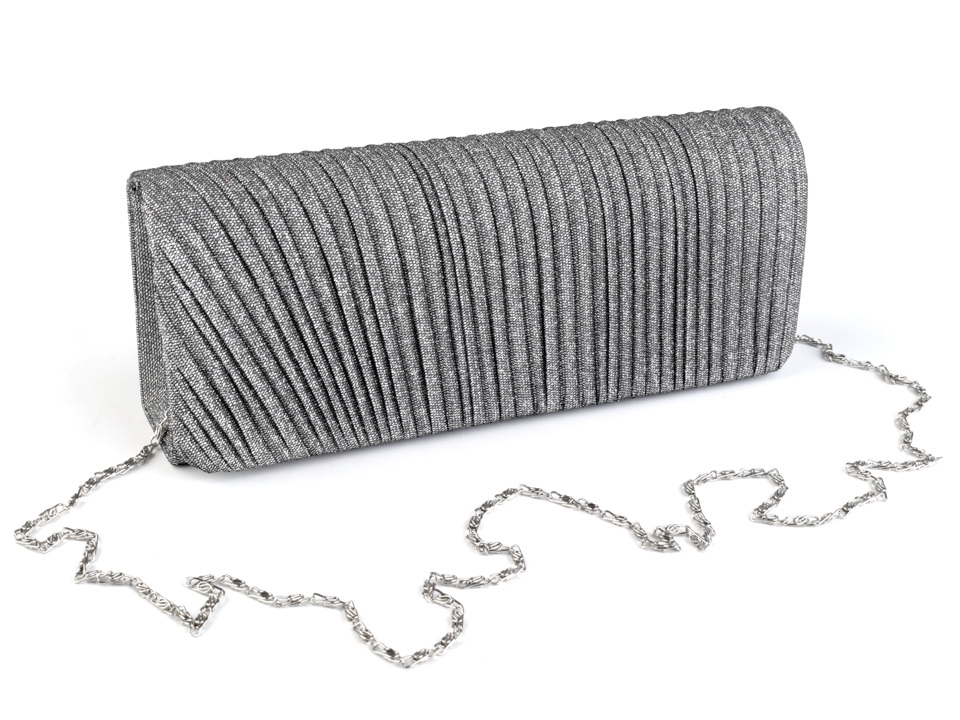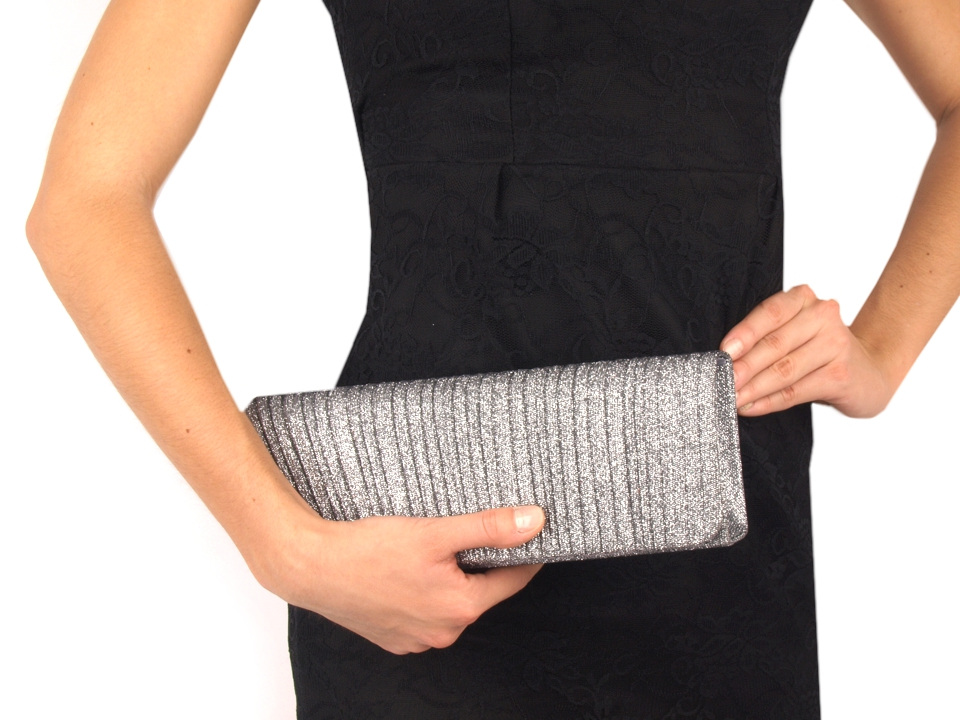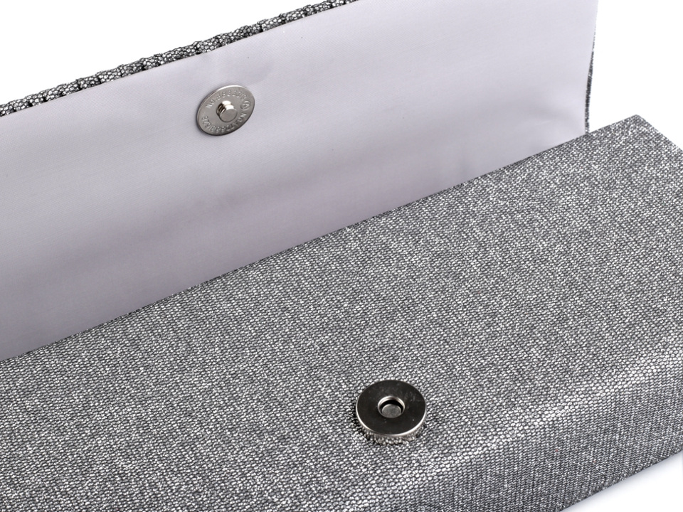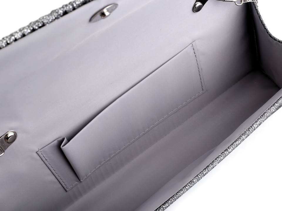 Třpytivé lurexové psaníčko využijete na slavnostní události, kde efektně doplní váš outfit. Uvnitř má polyesterovou podšívku a malou kapsičku na drobnosti. Zapíná se na magnet. Ke kabelce patří odepínatelný řetízek. Psaníčko můžete nosit s řetízkem přes rameno nebo bez něj jen tak v ruce.