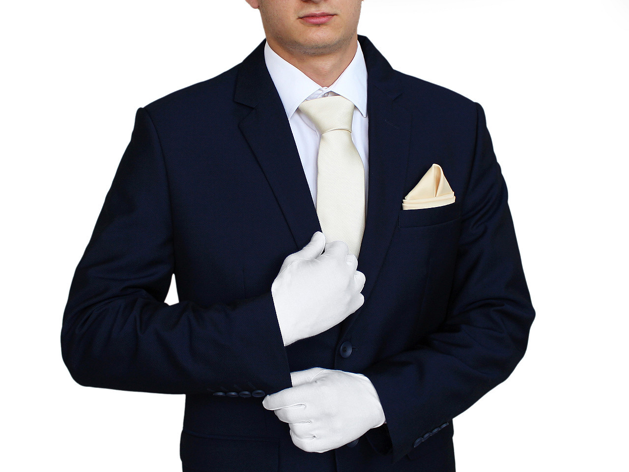 Pánské společenské rukavice patří neodmyslitelně do tanečních. Kvalitní bavlněné rukavice můžete využít i na svatbu nebo do společnosti.