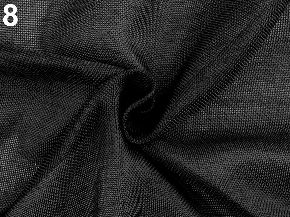 Látka svým vzhledem imituje pytlovinu. Je lehká, pevná, jemná a na dotek příjemná. Není obšitá.