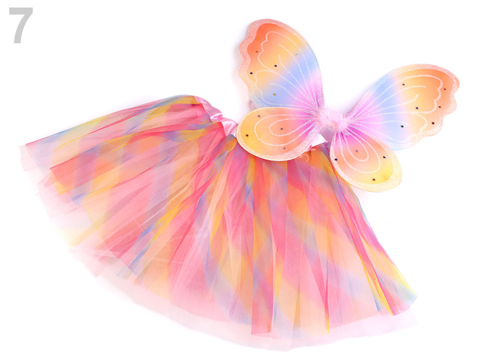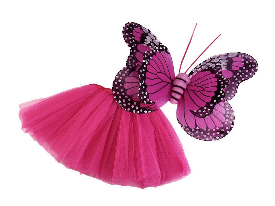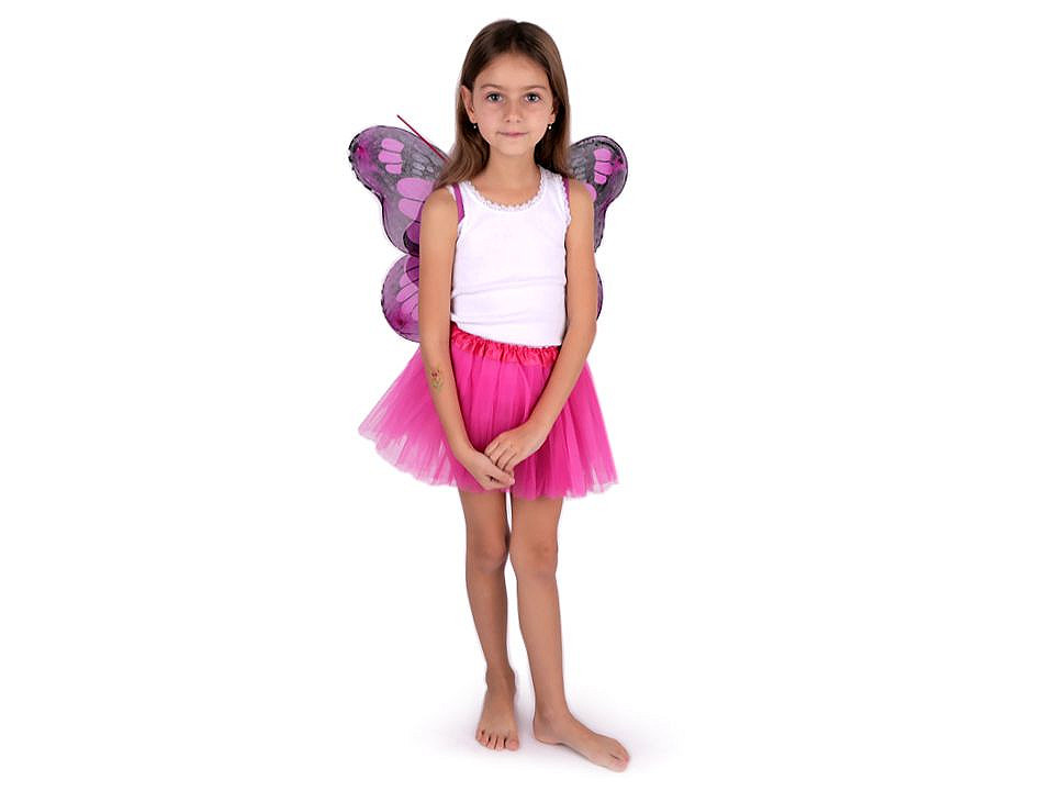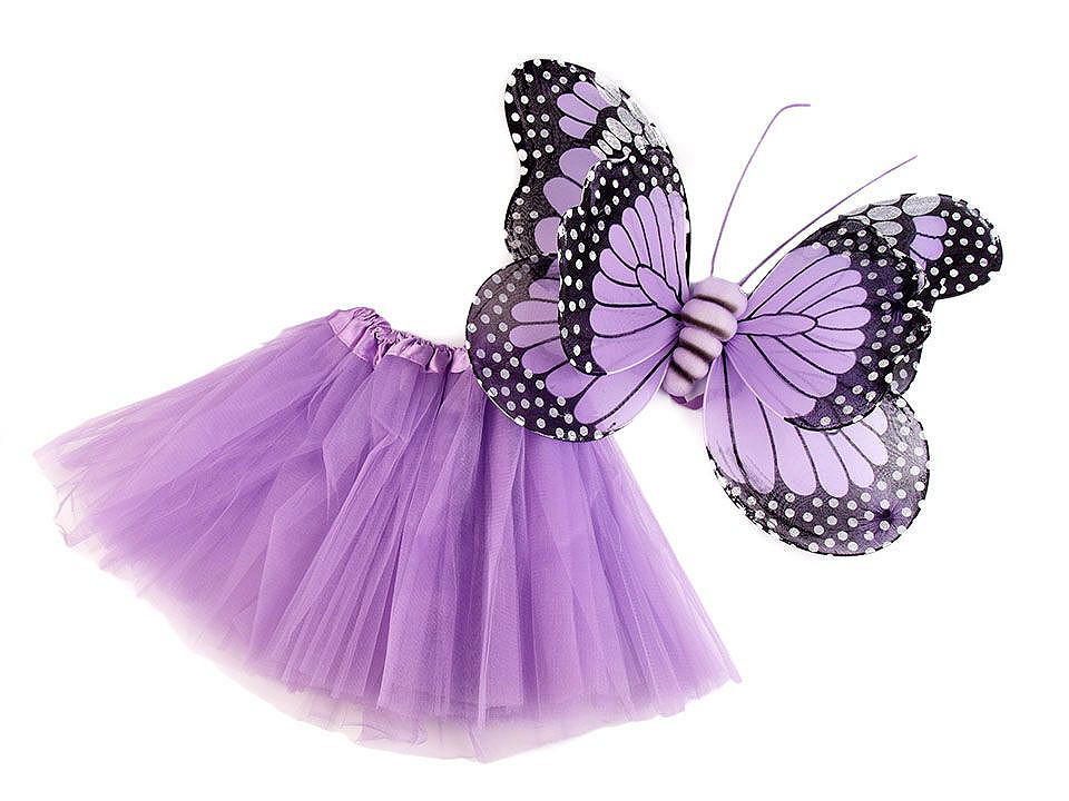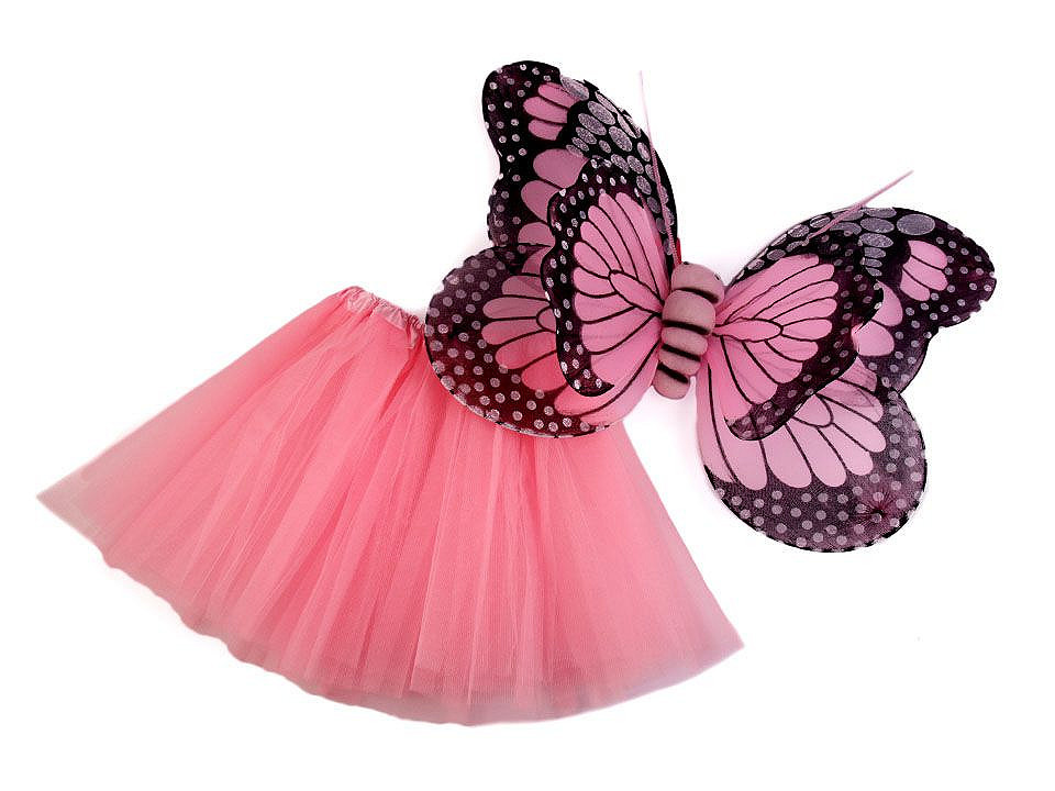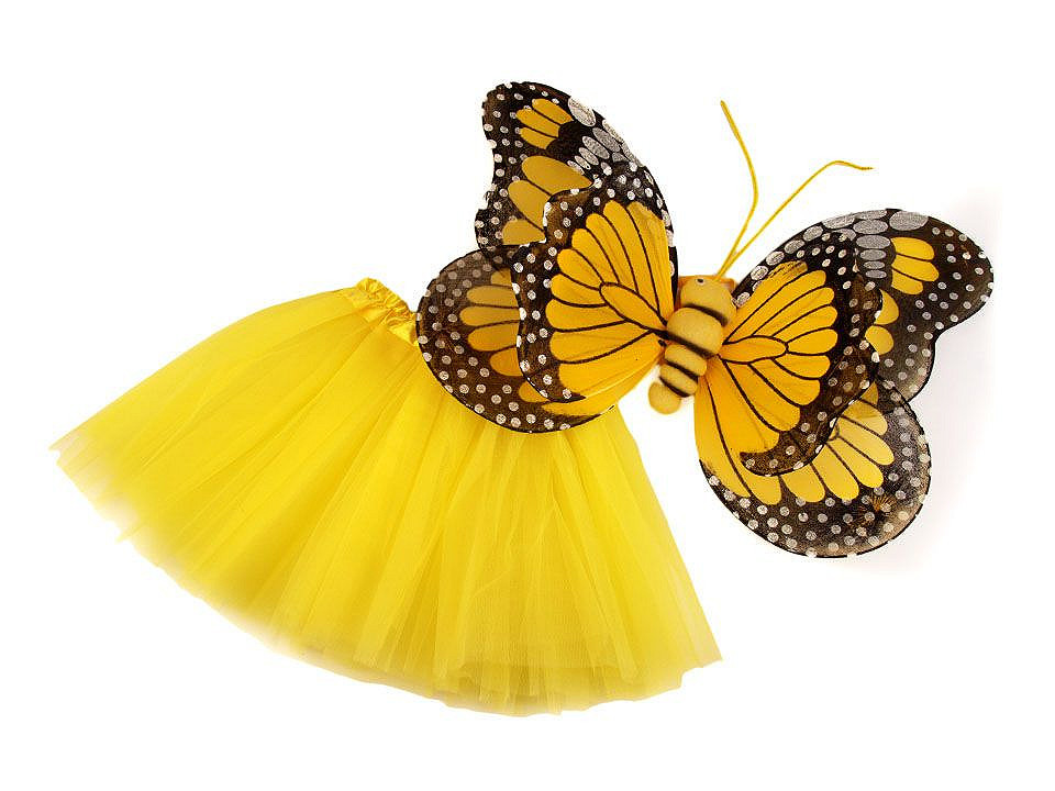 Kostým se skládá z tylové sukýnky a křídel, která jsou dvojitá, vyztužená a nasazují se pomocí gumiček.