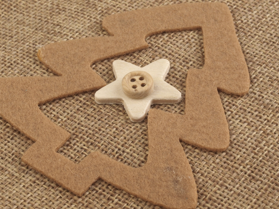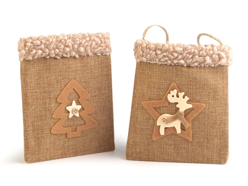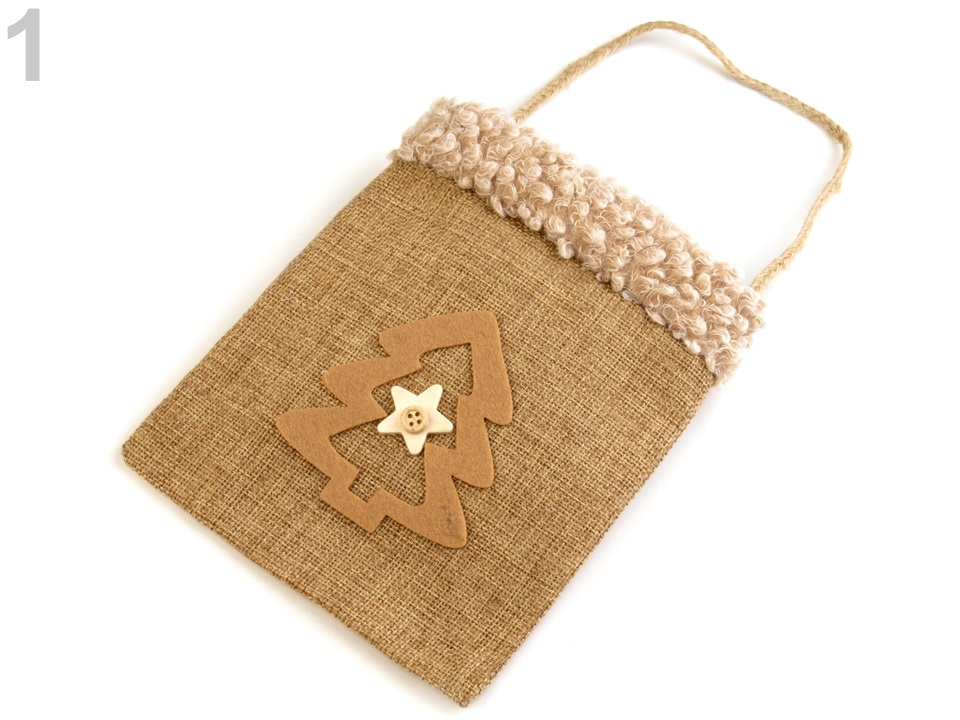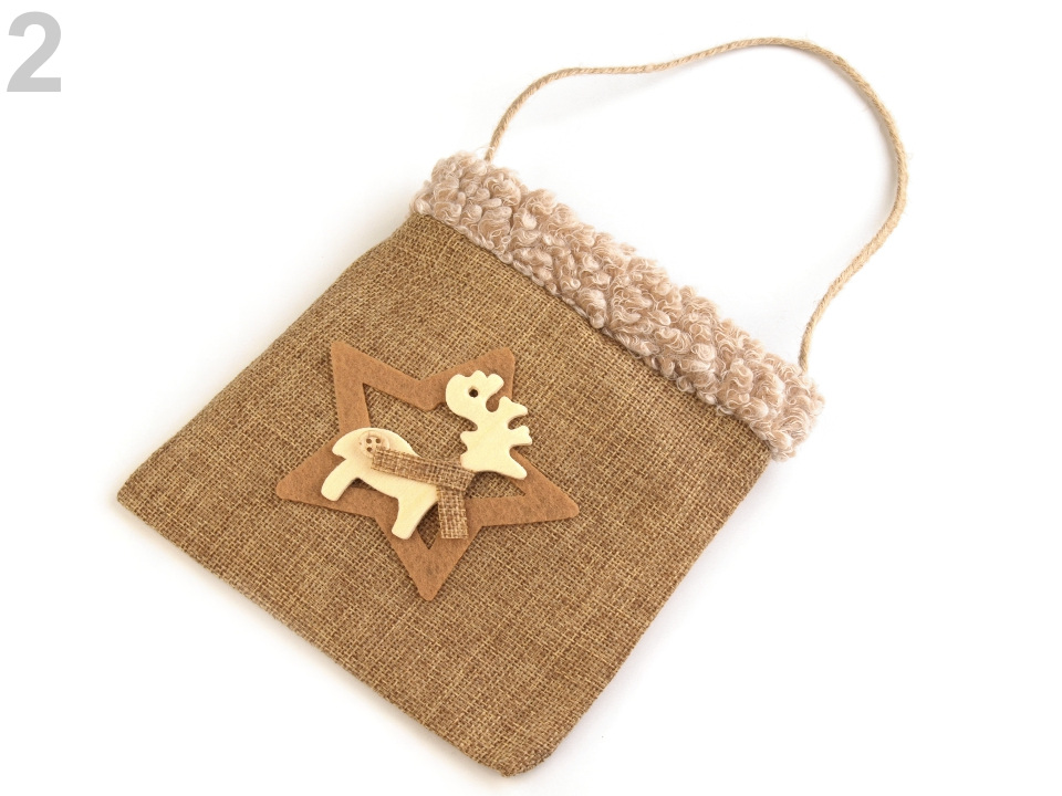 Dárková taška v kouzelném vintage stylu, stylově doladí sváteční atmosféru během Vánoc. Je ideální na drobné dárky například sladkosti, svíčky, malé hračky apod. Přední stranu zdobí filcová aplikace zajímavě zkombinovaná s dřevěnou dekorací. Horní okraj je zdobený plyšovým lemováním.