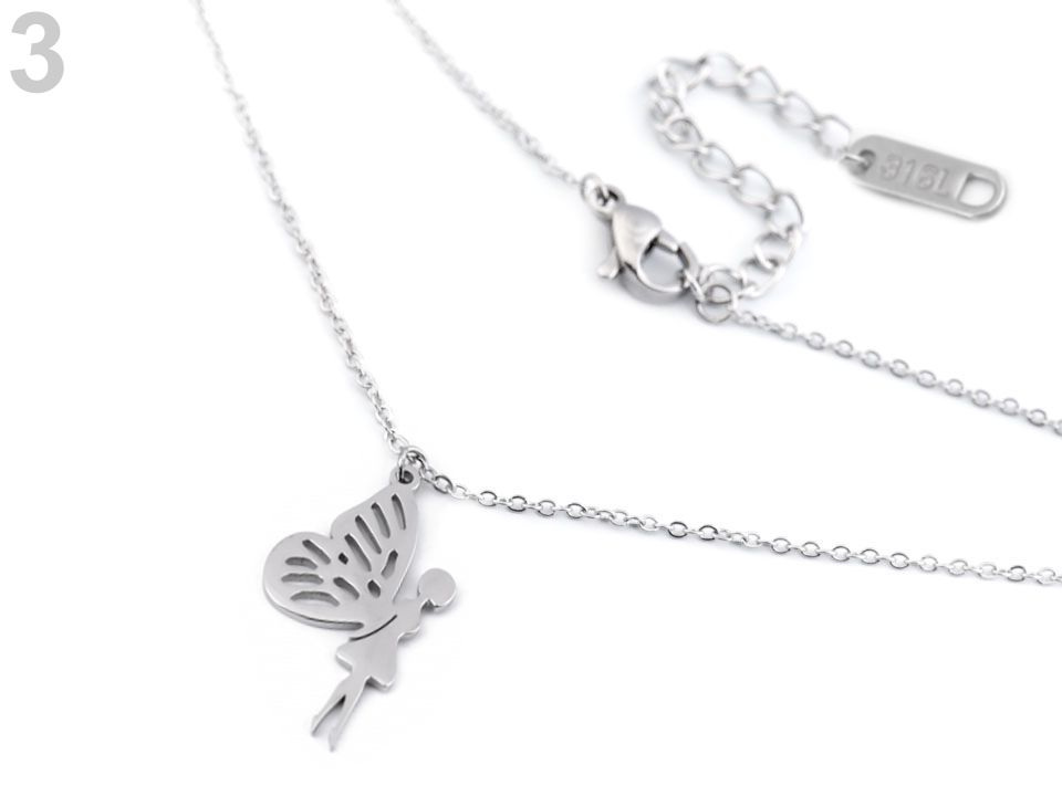 Náhrdelník č.3 - víla - má rozměry přívěsku 1,2 x 2,2 cm. Je vhodný i pro menší slečny a dívky.